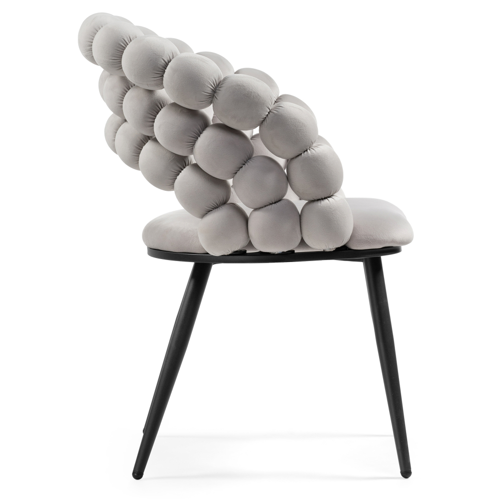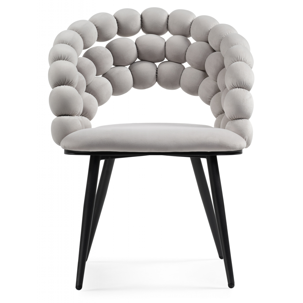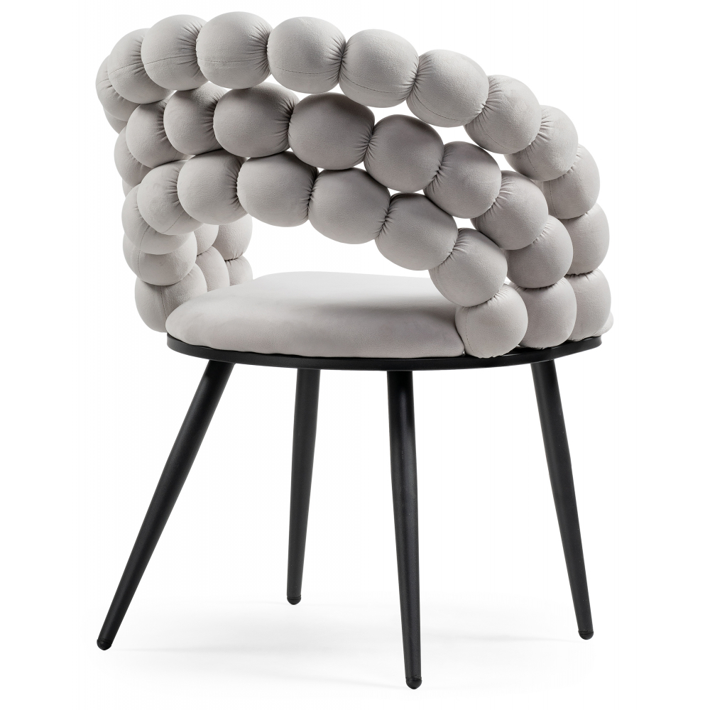 Стул Ball – это современная и элегантная модель, сочетающая в себе прочность, комфорт и стильный дизайн. Характеристики: Каркас: прочный металлический, выполнен в золотистом глянце, что придает стулу роскошный и современный вид. Обивка: велюровая (100% полиэстер) – мягкая, приятная на ощупь, не вызывает дискомфорта при контакте, сохраняет тепло (в отличие от холодных материалов, таких как кожа или пластик). Максимальная нагрузка: до 100 кг благодаря надежной металлической конструкции. Вращение сиденья: нет (стационарная модель). Подлокотники: отсутствуют, что делает стул более компактным.