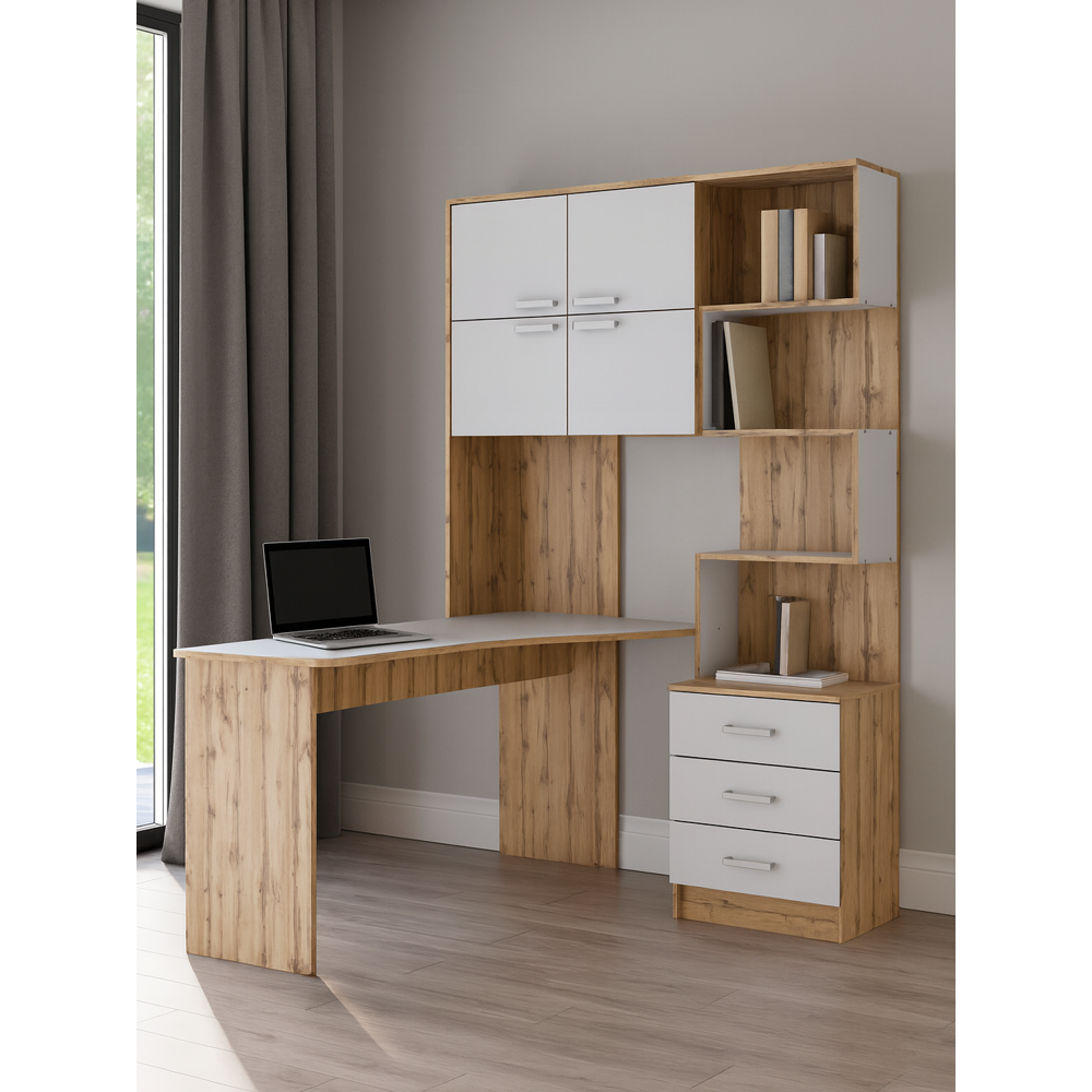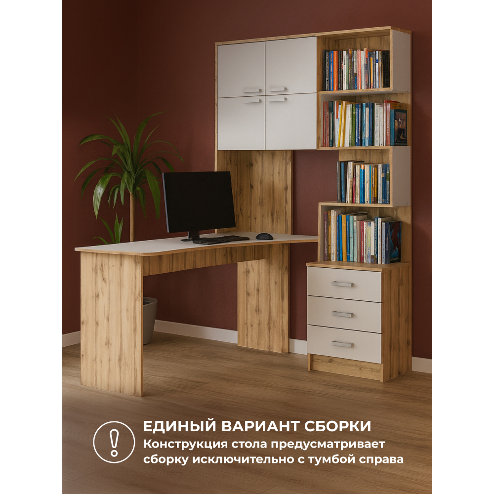 Компьютерный стол «Ганор» – это лаконичное и практичное рабочее место для современного пользователя. Особенности модели: Эргономичная конструкция – продуманная форма обеспечивает комфорт во время работы за компьютером Минималистичный дизайн – строгие линии и нейтральная цветовая гамма впишутся в любой интерьер Функциональная столешница – достаточно места для монитора, клавиатуры и рабочих материалов