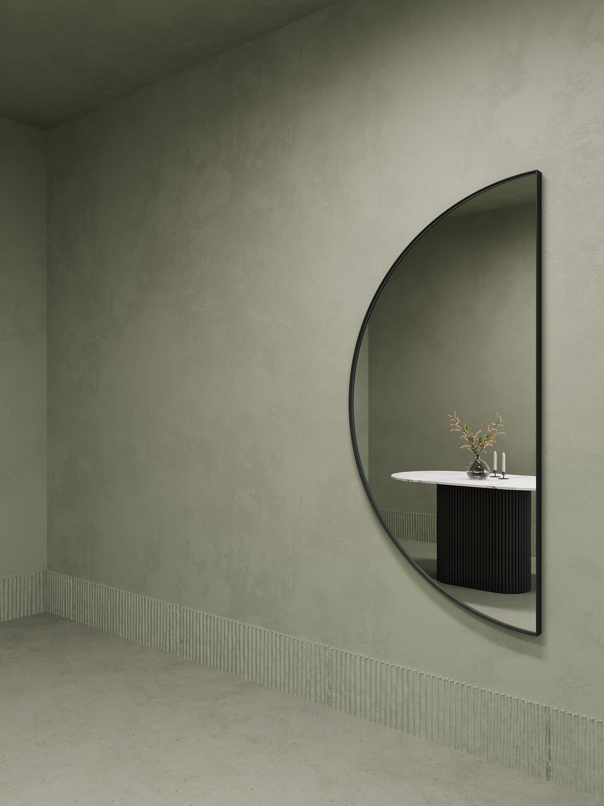 Отзывы о Столплит Зеркало рамное настенное в виде полукруга RONTUS M, 160*80 см Черный