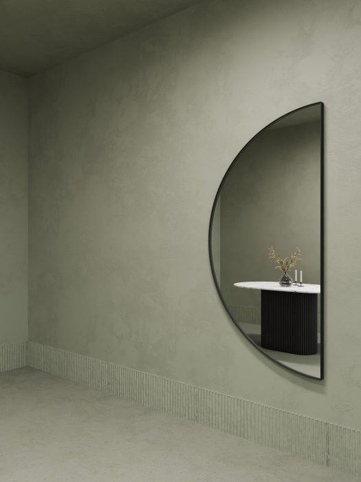 RONTUS M – это уникальное зеркало в форме полукруга с металлической рамой, которое отличается не только стильным дизайном, но и своей практичностью. Рама достаточно изящна, чтобы не перегружать композицию, но в то же время достаточно крепкая, чтобы надёжно фиксировать зеркальное полотно. Выступ рамы в 15 мм добавляет зеркалу объёмности, делая его визуально более интересным и привлекательным.