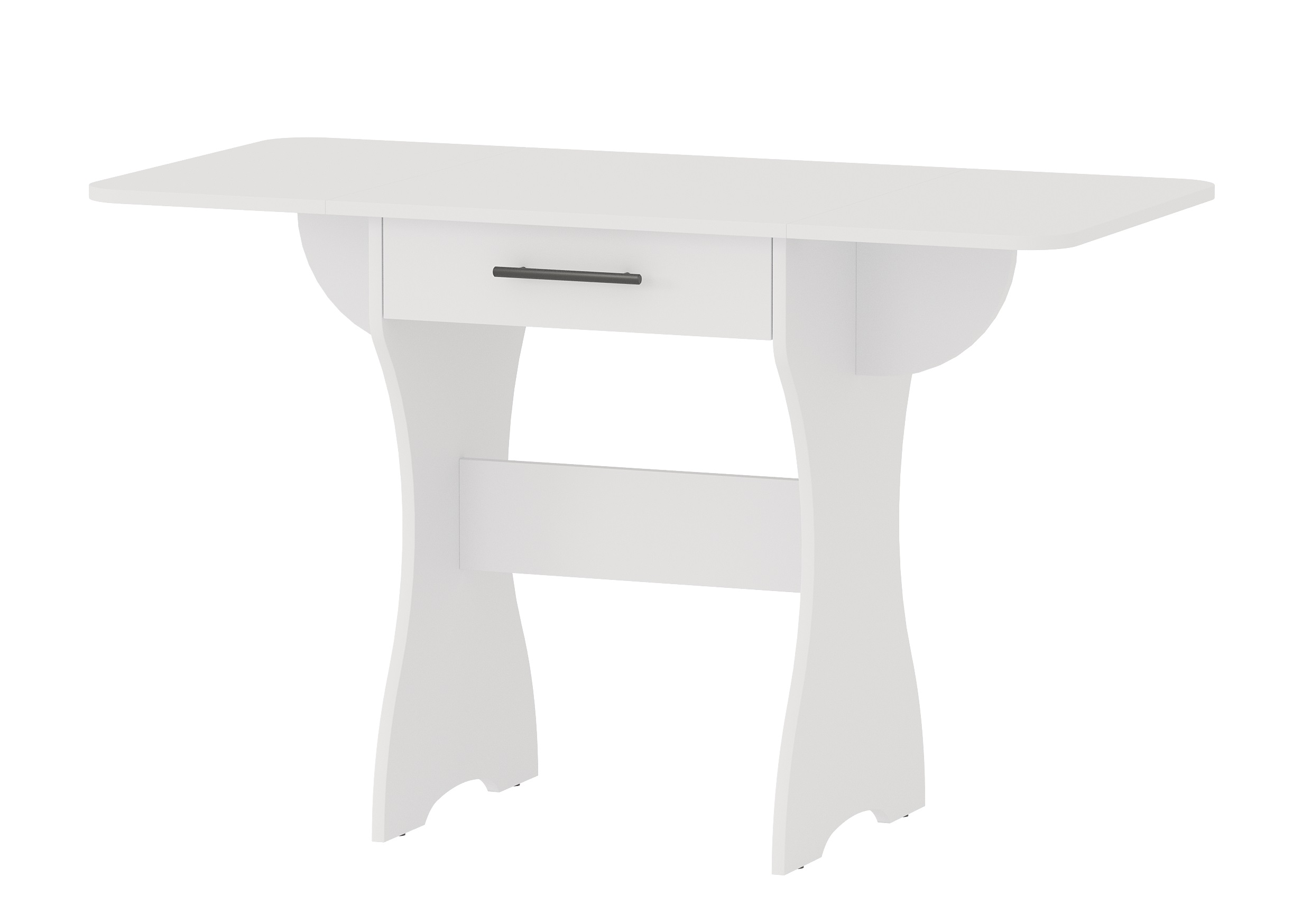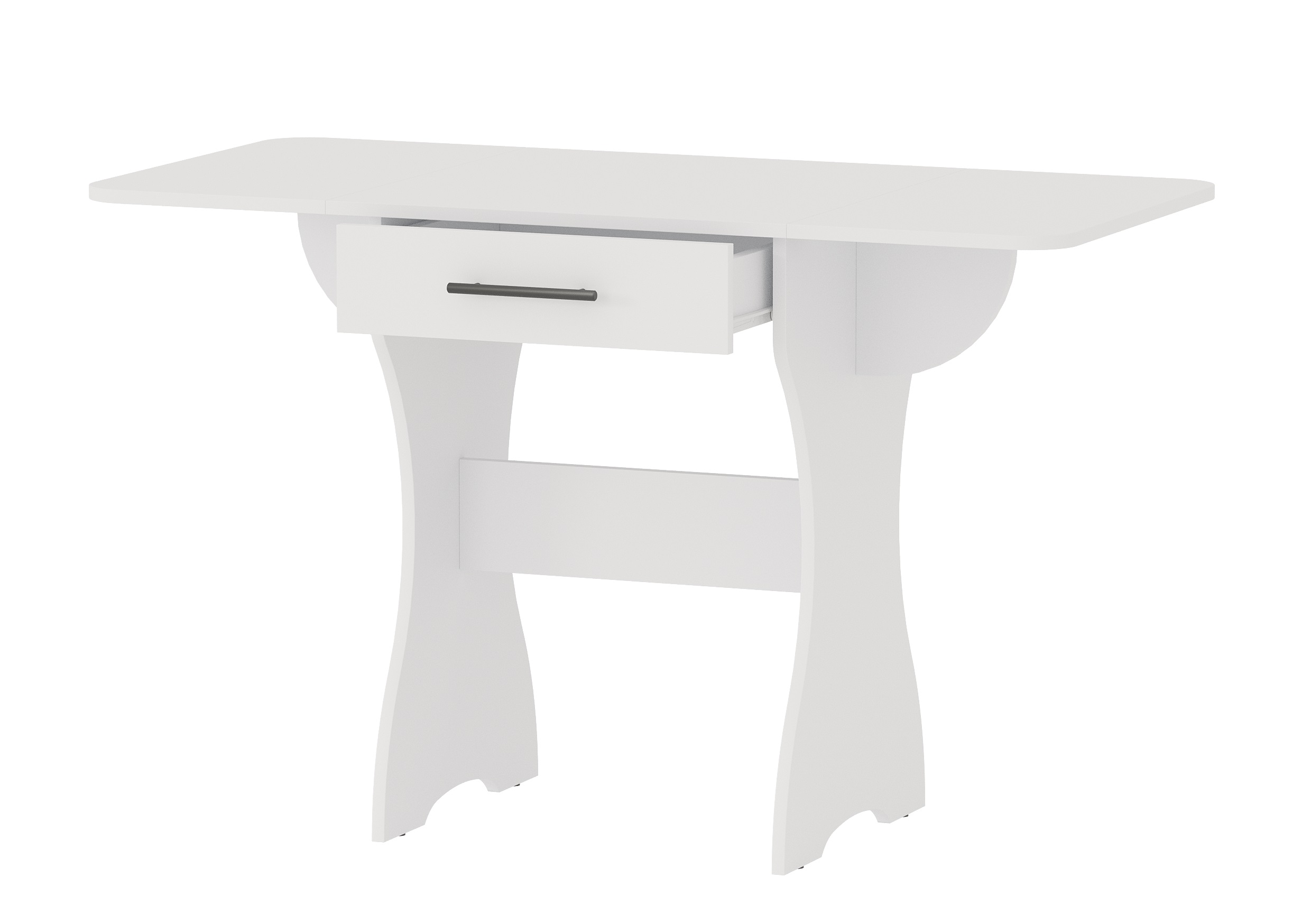 Удобный раскладной кухонный стол с выдвижным ящиком — идеальное решение для компактных и функциональных интерьеров. Надёжная модульная конструкция позволяет быстро трансформировать столешницу: в сложенном виде он занимает всего 600 мм длины, а при необходимости раскладывается до 1200 мм. Под столешницей расположен вместительный выдвижной ящик, в котором можно хранить мелкую кухонную утварь или текстиль.