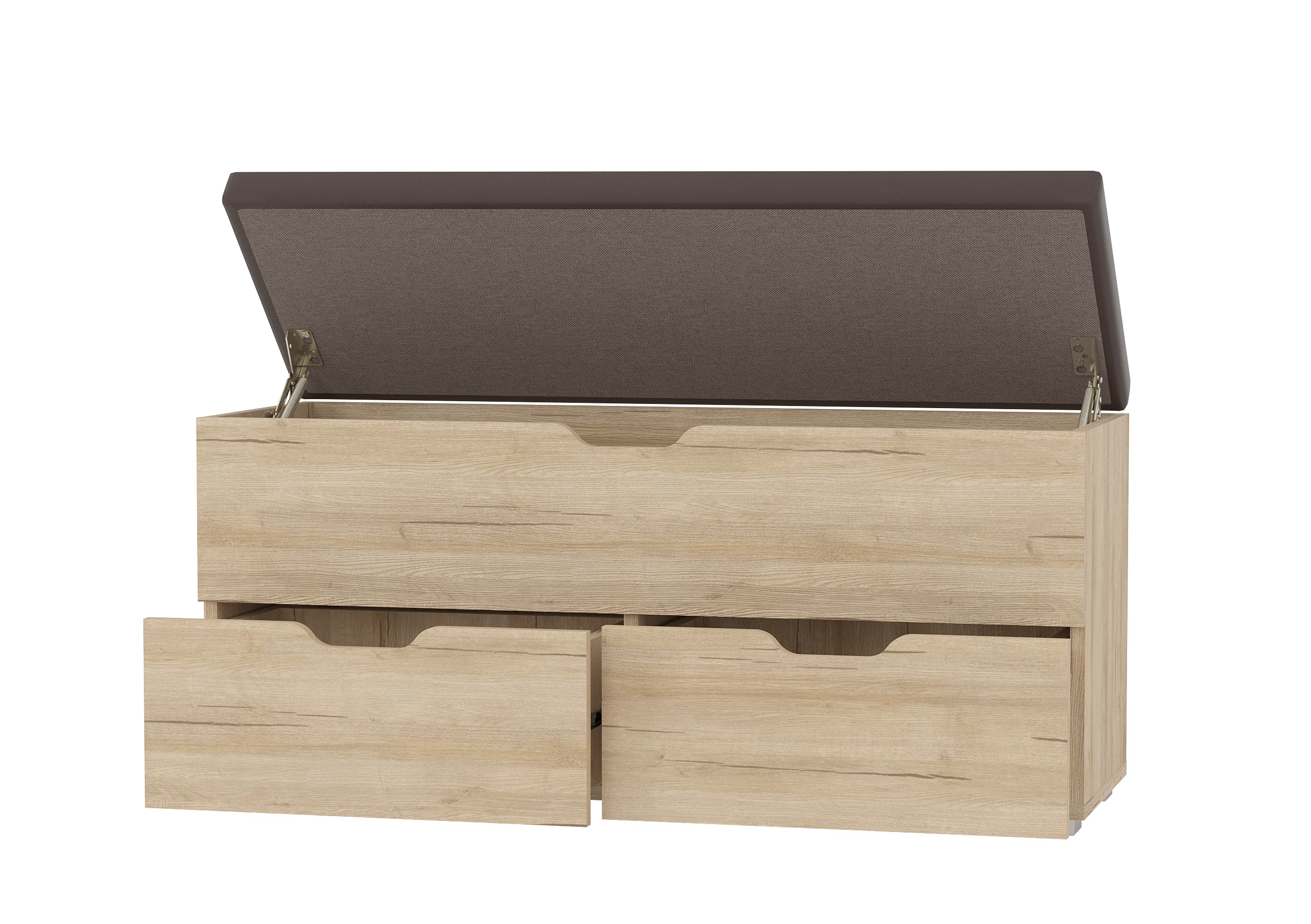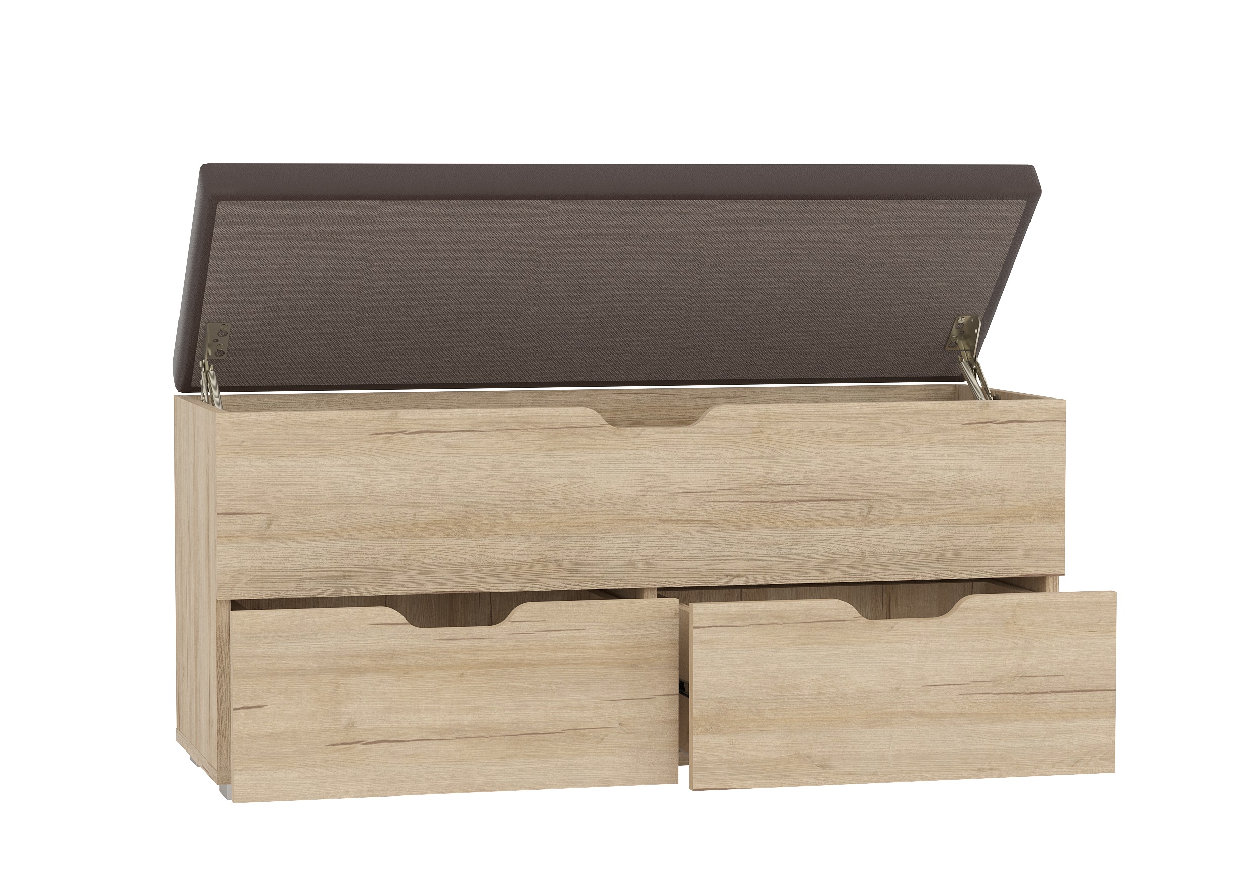 Диван для прихожей "Флинт" стилизован под сундук с мягкой верхней откидной крышкой и двумя вместительными ящиками, это позволяет хранить различные вещи и мелочи, что так необходимо для прихожей.