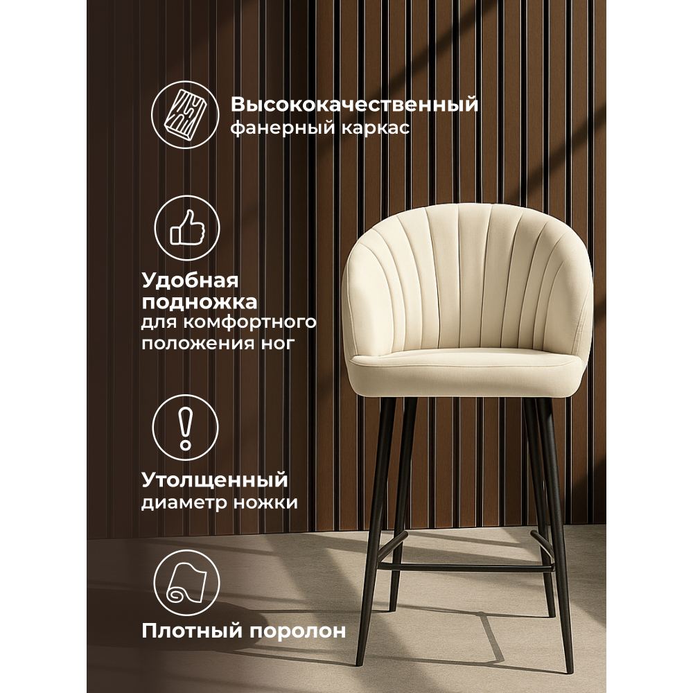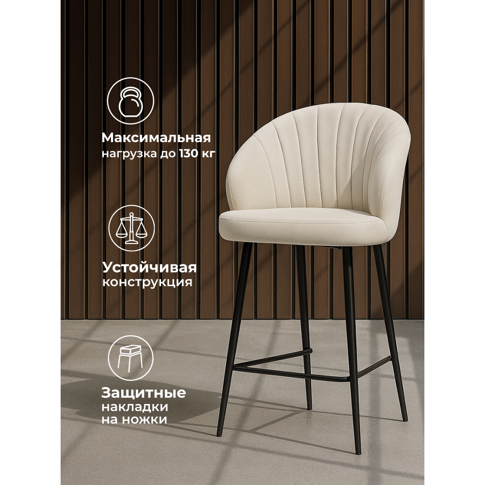 Отзывы о Столплит Стул полубарный на металлокаркасе Бэнбу некрутящийся marseille (чёрный) Молочный
