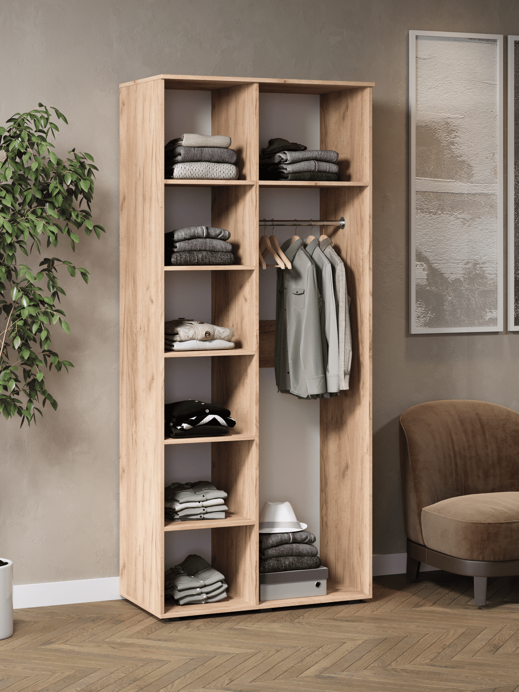 Стильный и практичный распашной шкаф для одежды, решит как минимум две ваших задачи, будет служить многофункциональной нишей для одежды и белья, а также удобным и полезным дополнением в интерьере. Наша модель Ингрия Luxe российского производства выглядят легко и современно, идеально впишется в лофт, скандинавский, современный, минимализм и прочие популярные стили интерьеров. Его минималистичный дизайн придадут легкость и простор всему вашему интерьеру. Шкаф напольный, компактный узкий шкаф сэкономит пространство и организует грамотное хранение вещей в доме. Распашной шкаф (шифонер) для спальни имеет полои и штангу, двери распашные. Ножки изготовлены из прочного массива дерева. Шкаф изготовлен из материалов высокого качества. За высокопрочность и долговечность отвечает корпус, выполненный из ЛДСП, подходит для активного использования. За эстетику и лаконичность дизайна отвечает фасад из МДФ созданный путем сложной фрезеровки в виде геометрического 3D рисунка. Накладная алюминиевая ручка подчеркнет монолитный образ. Длинный высокий шкаф пенал поставляется в разобранном виде, пусть это вас не пугает. В комплекте предусмотрены все необходимые комплектующие, подробная инструкция и фурнитура. Сборка не потребует особых навыков и не отнимет много времени.Современная корпусная мебель для дома должна не только брать на себя пару задач по организации пространства, но и гармонично смотреться, выполняя нужные нам функции. Поэтому шкаф для прихожей можно использовать в разных помещениях в гостиной, спальне, прихожей (коридоре), в детской, в офисе, в салоне красоты, на балконе. Он справится со всеми возложенными на него функциями. Используйте шкаф купе, как модуль мебельный под аксессуары, коробки с обувью, как нишу для детских книг и игрушек.Перед отправкой мебели, каждое изделие проходит проверку на наличие брака. Для целостности и сохранности каждого изделия мы разработали усиленную, надежную упаковку. Европейское качество от российского производителя - по доступным ценам.