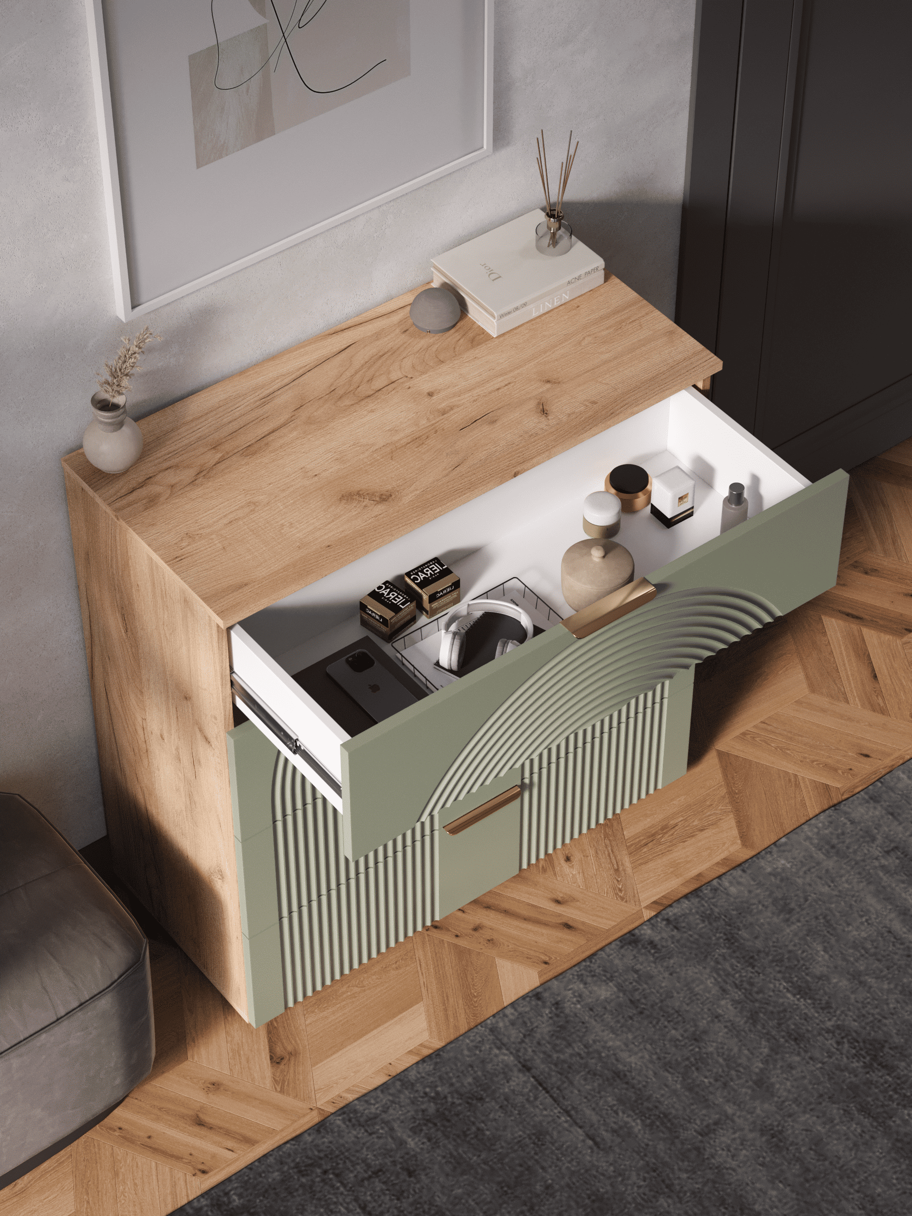 Стильный и практичный комод с ящиками, решит как минимум две ваших задачи, будет служить многофункциональной нишей для хранения вещей, одежды, белья и универсальной подставкой для различных предметов интерьера, а также можно использовать в виде тумбы под телевизор. Наша коллекция Ингрия российского производства выглядят легко и современно, идеально впишется в лофт, скандинавский, современный, минимализм и прочие популярные стили интерьеров. Его минималистичный дизайн придаст легкость и простор всему вашему интерьеру. Комод компактный и сэкономит пространство и организует грамотное хранение вещей. Комод имеет 4 выдвижных ящика. За удобство и комфорт открывания ящиков отвечают шариковые направляющие (без доводчиков), с полным выдвижением. Ящики с такой системой открывания будут ходить практически бесшумно, и выдвигаться полностью, даже при повышенной нагрузке. Ножки изготовлены из прочного массива дерева. Комод изготовлен из материалов высокого качества. За высокопрочность и долговечность отвечает корпус, выполненный из ЛДСП, подходит для активного использования. За эстетику и лаконичность дизайна отвечает фасад из МДФ созданный путем сложной фрезеровки в виде 3D рисунка. Накладные алюминиевые ручки для комода подчеркнут монолитный образ. Комод поставляется в разобранном виде, пусть это вас не пугает. В комплекте предусмотрены все необходимые комплектующие, подробная инструкция и фурнитура. Сборка комода серого с ящиками не потребует особых навыков и не отнимет много времени. Современная мебель для дома должна не только брать на себя пару задач по организации пространства, но и гармонично смотреться, выполняя нужные нам функции. Поэтому комод можно использовать в разных помещениях в гостиной, спальне, прихожей (коридоре), в детской для игрушек, в офисе, в салоне красоты, на балконе. Комод для вещей справится со всеми возложенными на него функциями. Перед отправкой мебели, каждое изделие проходит проверку на наличие брака. Для целостности и сохранности каждого изделия мы разработали усиленную, надежную упаковку. Европейское качество от российского производителя - по доступным ценам.