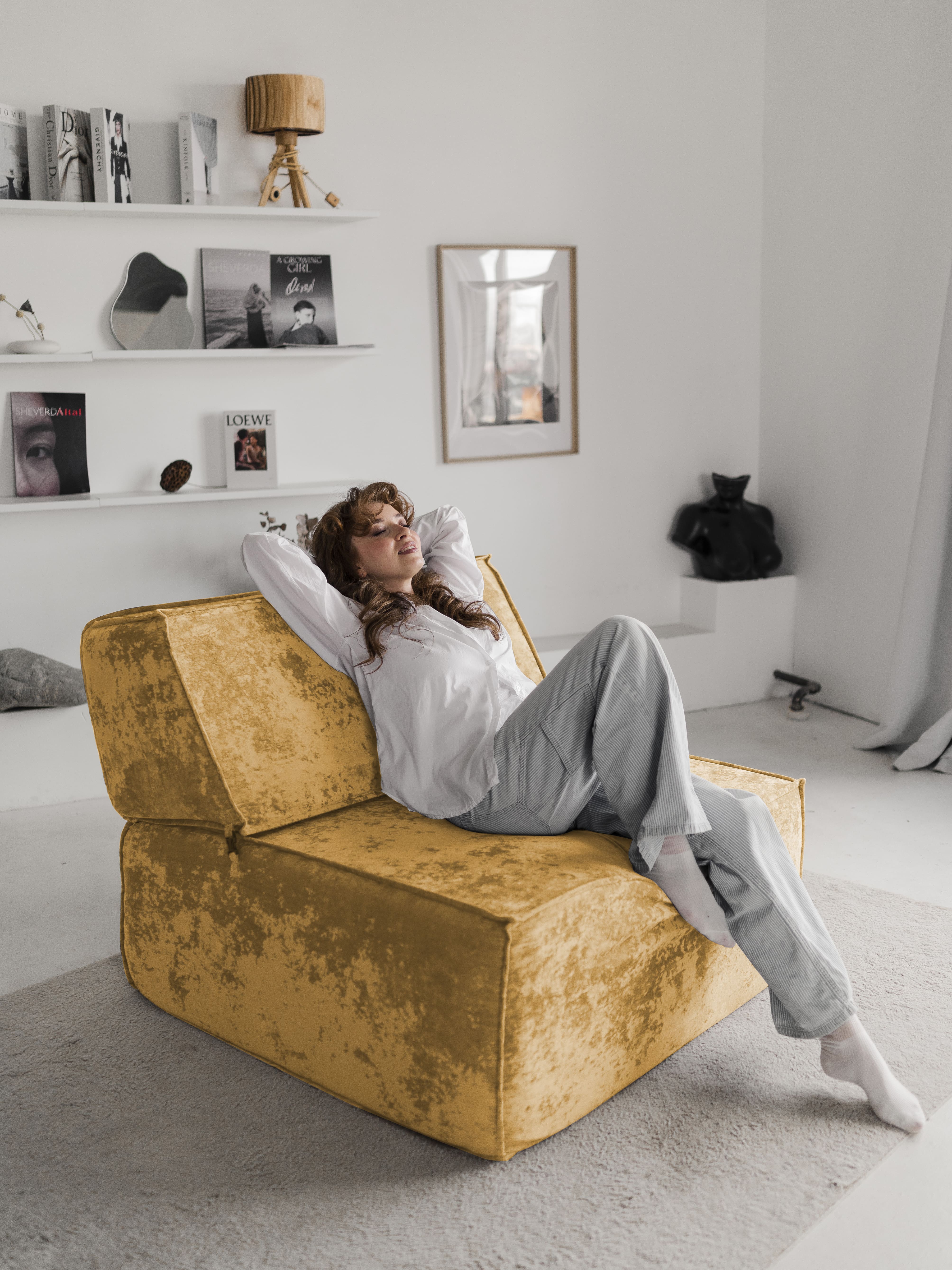 Бескаркасное кресло Клайд,плюше (Альфа оранжевый)