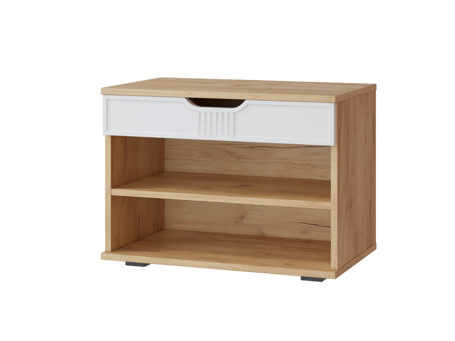 Тумба для обуви Эмилия ЭЛ-44 – компактная модель для комфортного переобувания в прихожую. Лаконичное изделие оборудовано двумя полками для обуви и сиденьем, под которым находится удобный ящик для хранения чистящих средств, щеток или зонта. Высота опоры 20 мм.