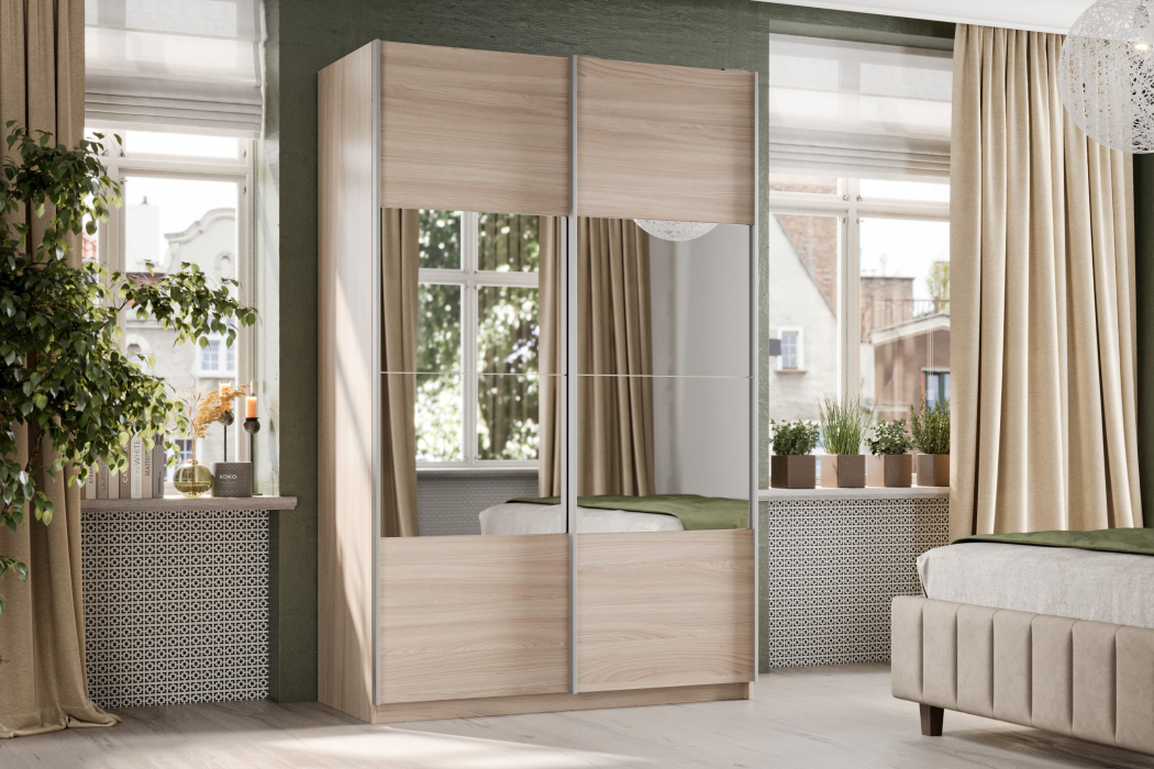 Шкаф-купе Smart 1624 2х дверный (фасады ЛДСП/зеркало) профиль серебро (Ясень шимо светлый)
