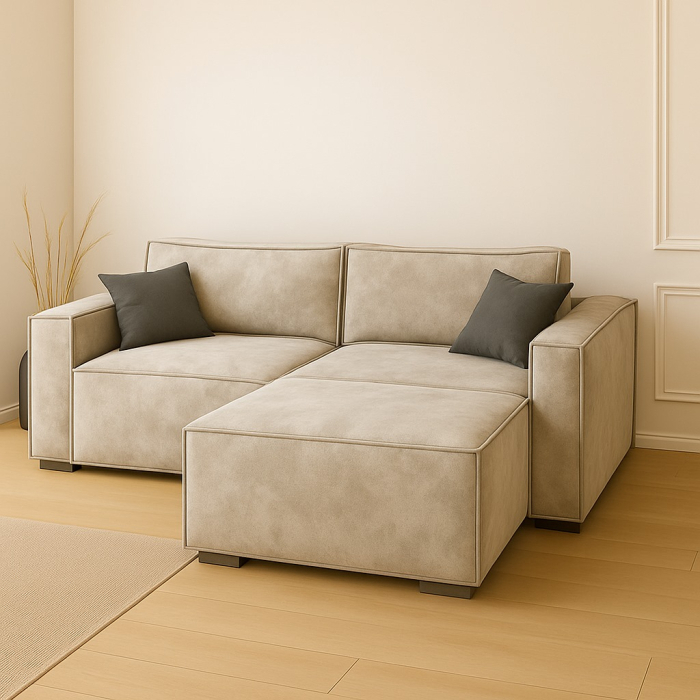 Размеры модели: длина — 240 см, глубина — 105 см, высота по спинке — 80 см, длина оттоманки — 210 см.