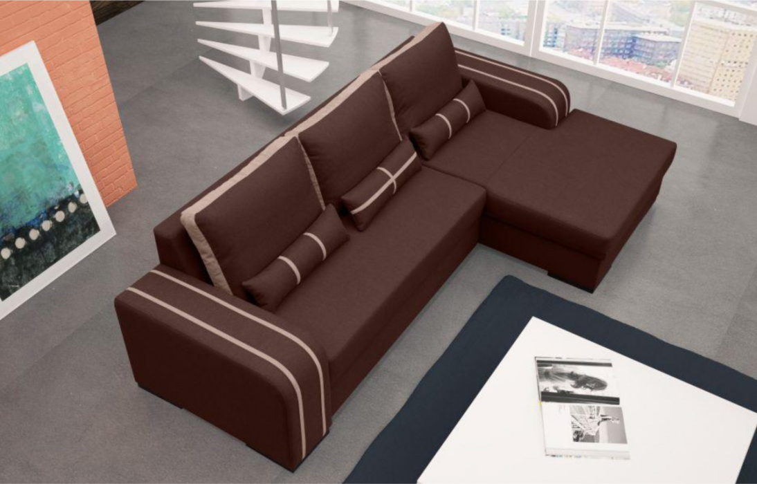 Размеры модели: длина — 283 см, глубина — 165 см, высота по спинке — 80 см, длина оттоманки — 225 см.