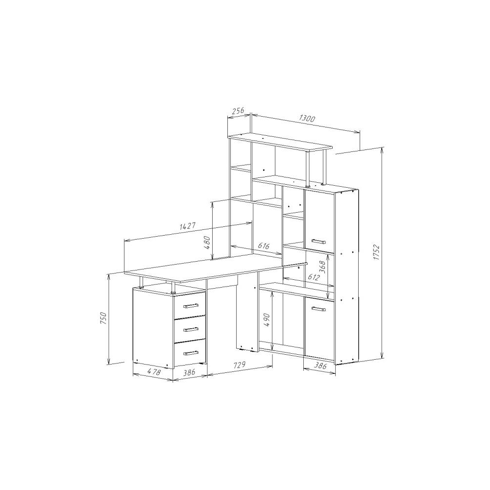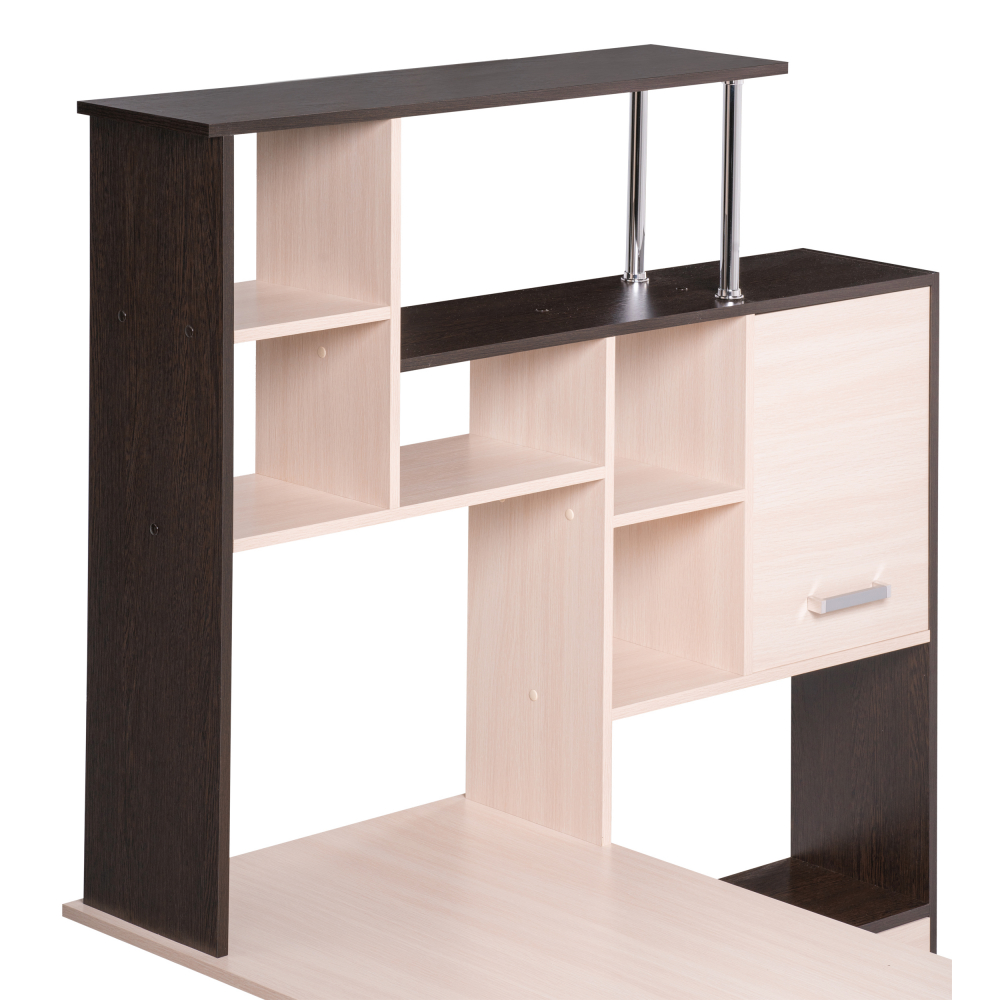 Стол КС-15 венге / дуб молочный правый; ЛДСП. Высота столешницы 75см. Рабочее место - 142х62см. Толщина ЛДСП - 16мм. Имеется 3 выкатных ящика на роликовых направляющих, 4 закрытых дверьми полки. Огромная вместительность для учёбы