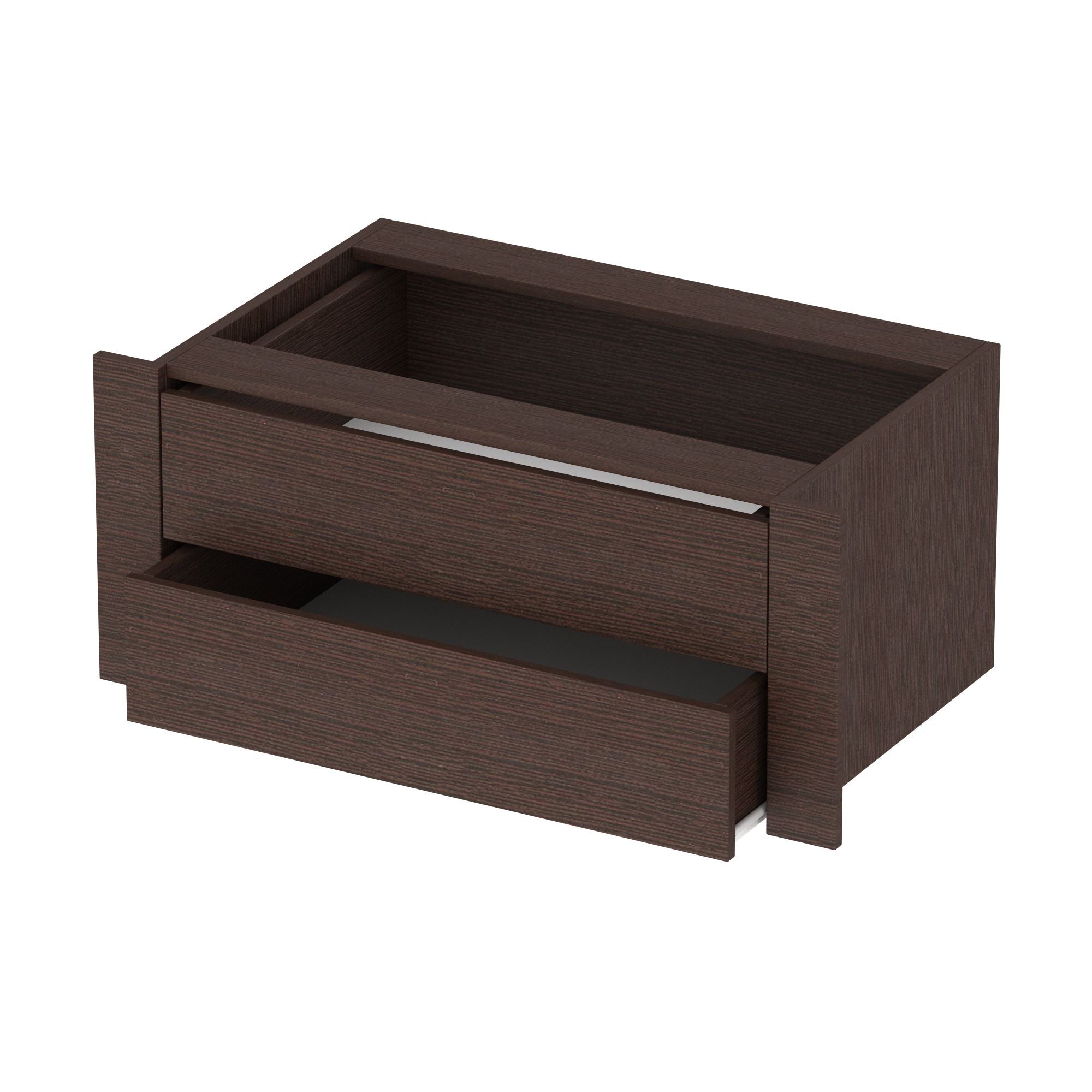 Ширина по фасаду 800 мм Модуль изготовлен из ламинированного ДСП. Он идет в виде куба, внутри которого два выдвижных ящика. Модуль ставится на любую полку и прикрепляется к ней. Ящики двигаются по металлическим направляющим. Направляющие работают бесшумно и плавно, надежны и долговечны.