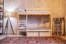 7) кровать ходит ходуном. ребенку 12 лет на втором этаже страшно, так как она шатается (не мудрено, точек крепления конструкции не много) мы планируем сделать по диагонали две балки.
