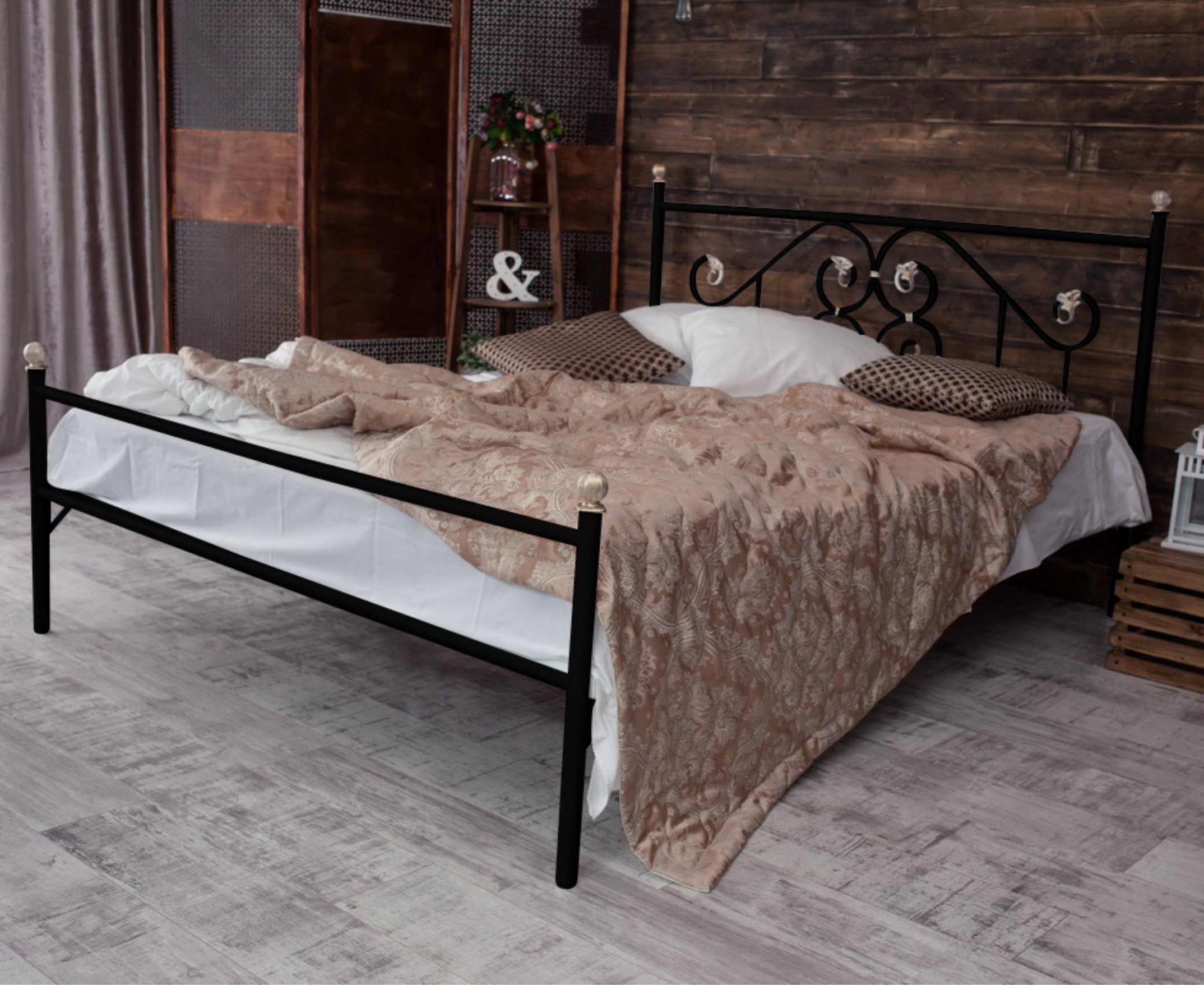 Кованая кровать Камелия выполнена из надежных, прочных материалов, благодаря чему прослужит вам долгие годы.
