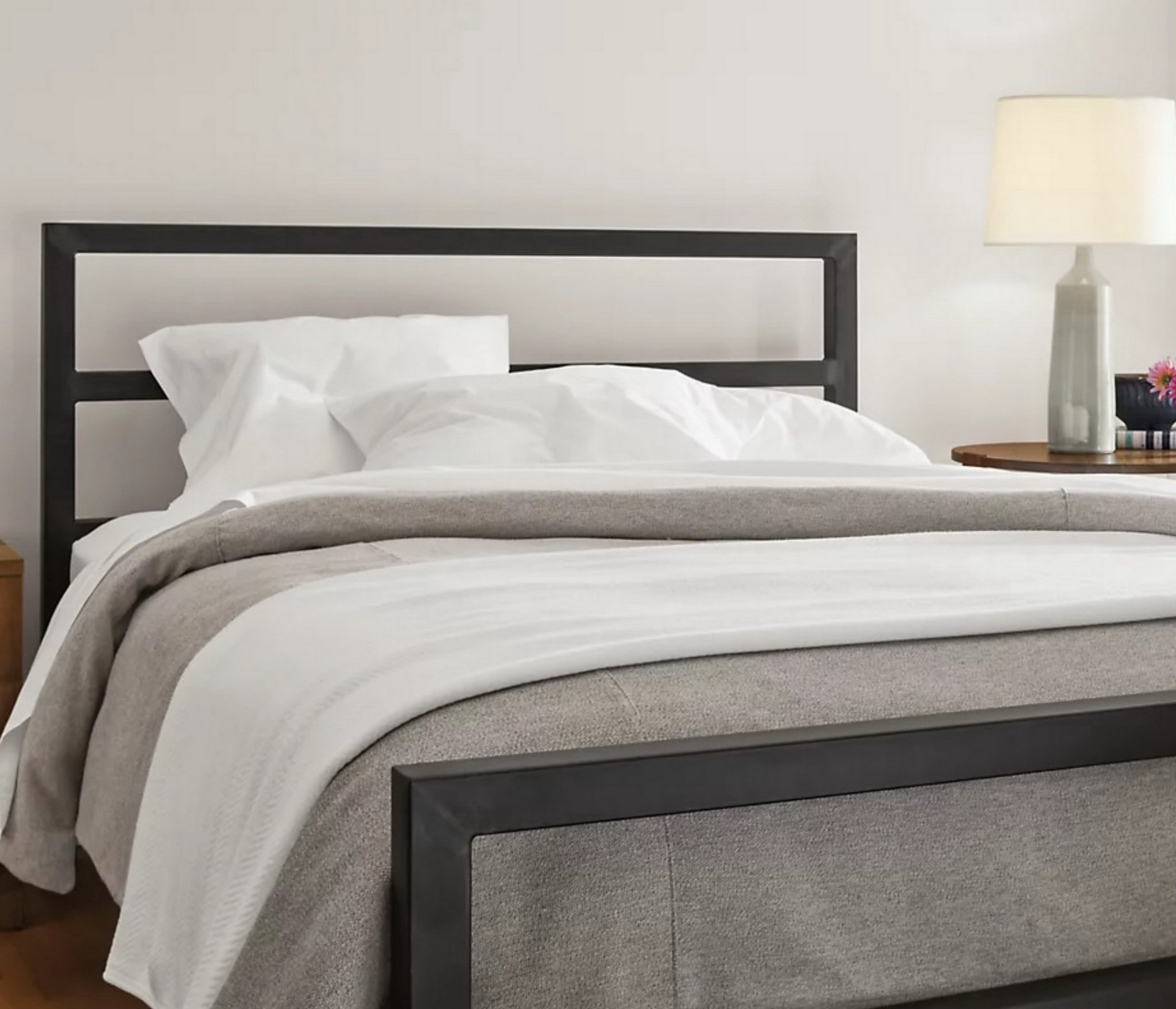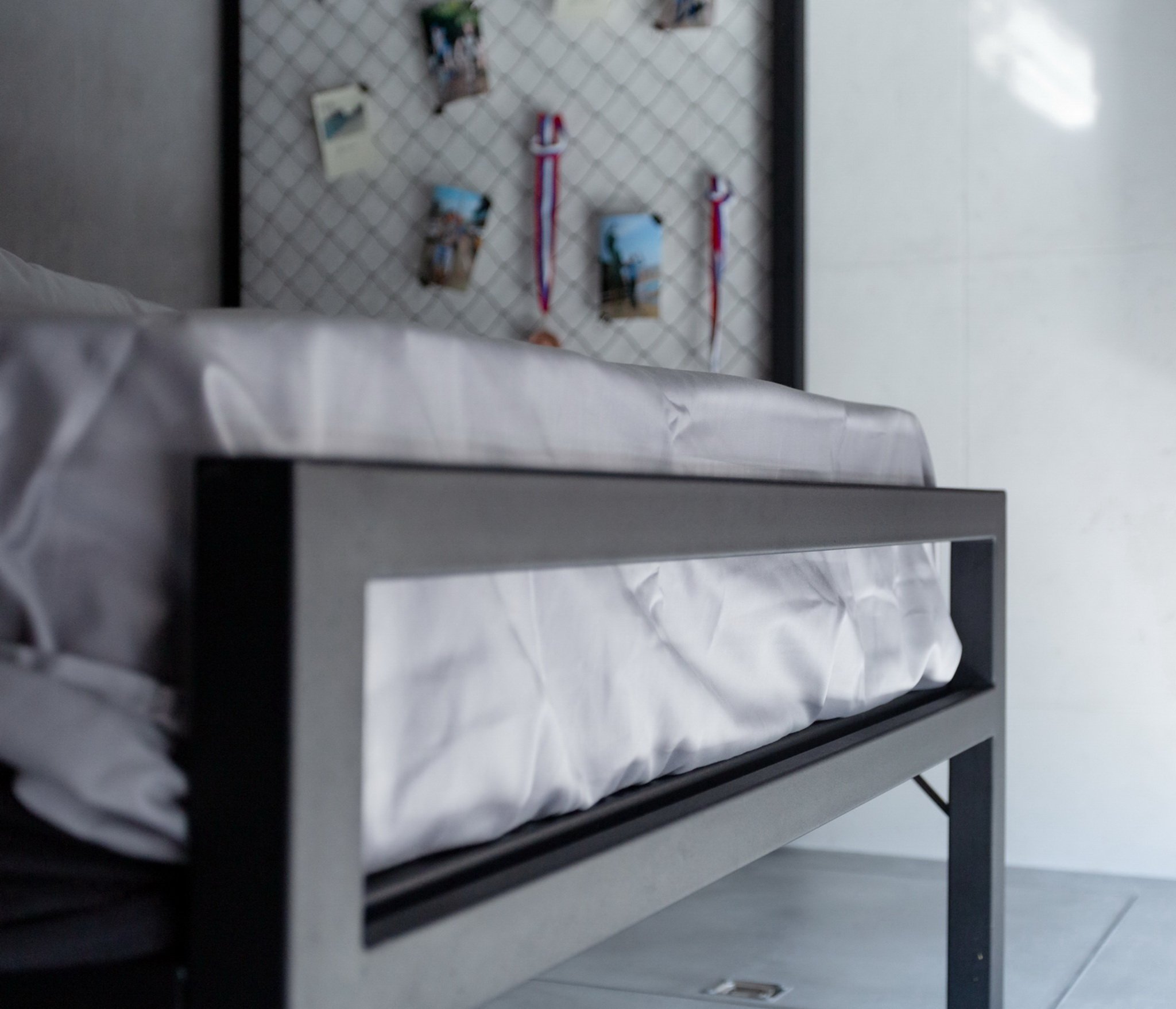 Благодаря отсутствию сплошного полотна изголовья и основания и его замены на горизонтальные перекладины модель выглядит изящно и совершенно не громоздко, благодаря чему может гармонично дополнить любой интерьер в современной стилистике.