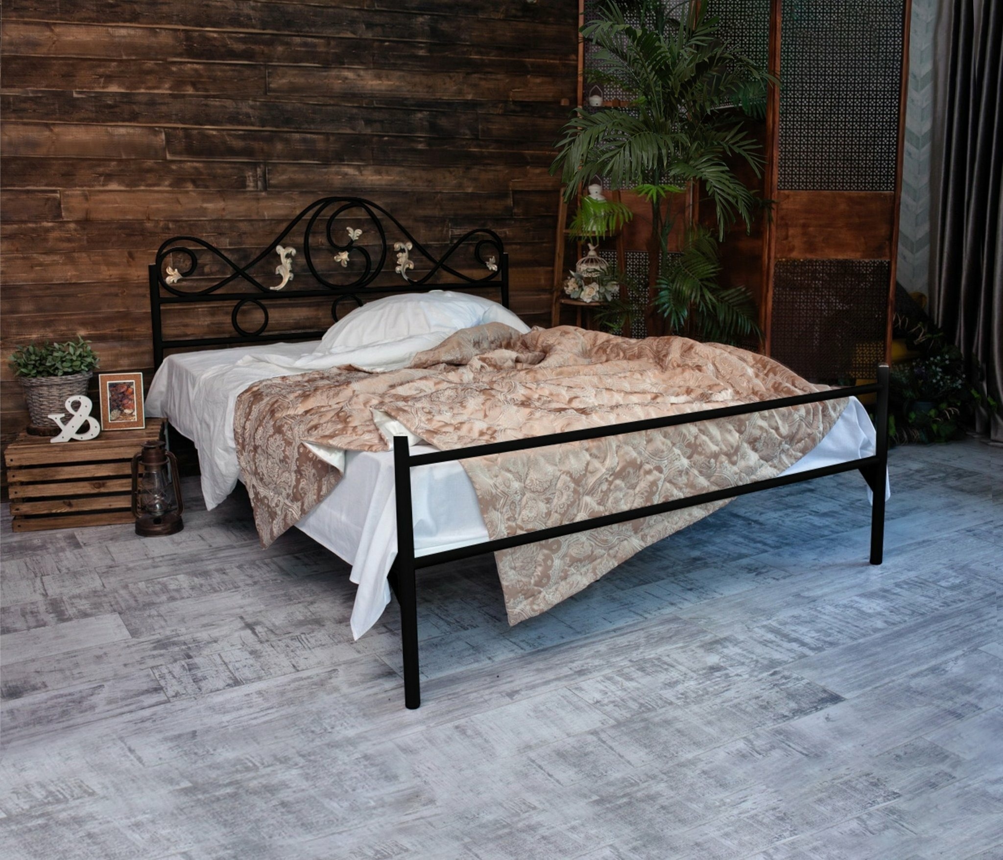 Кованая кровать Венеция 1.6 с одной спинкой (Черный)