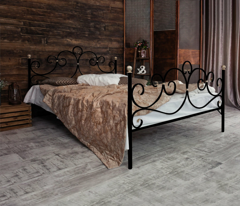 Кованая кровать Флоренция 1.4 с двумя спинками (Черный)