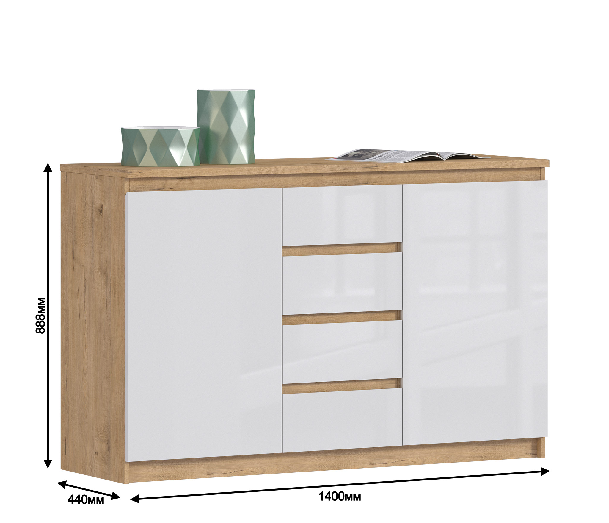 Комод Веста СБ-2254 (Белый/Дуб Бунратти)