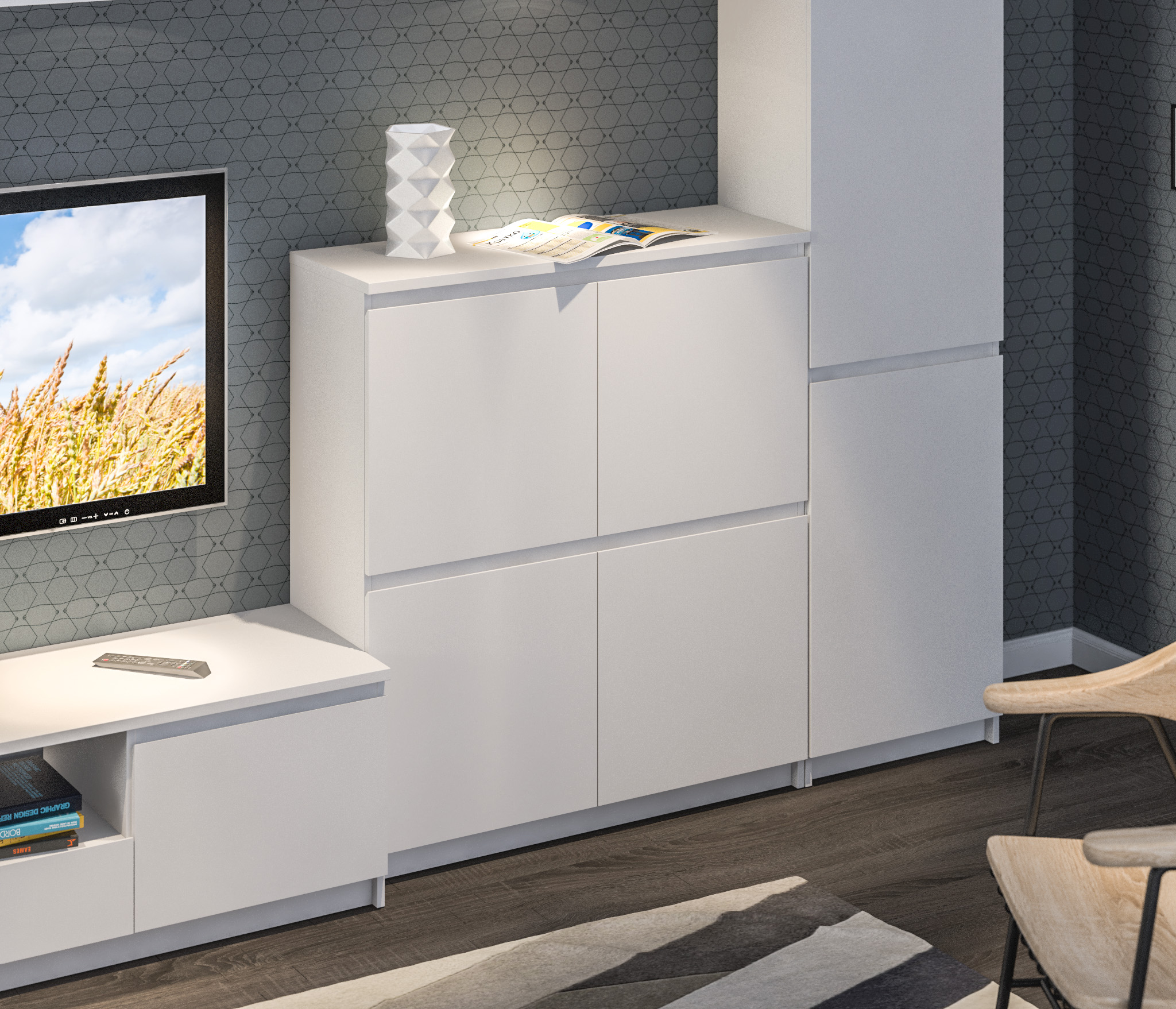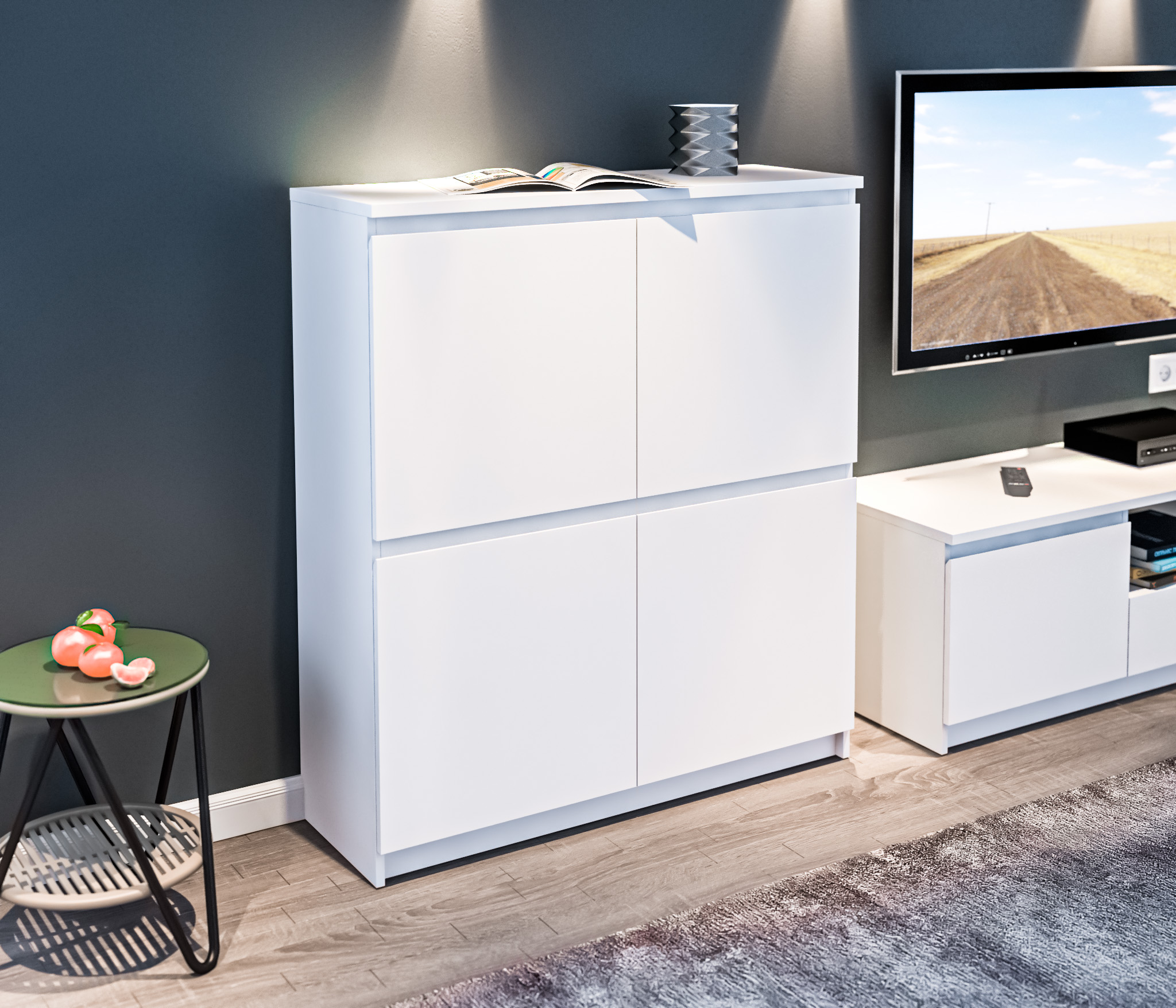 Комод Веста СБ-2255 Белый отлично выпишется в интерьер кабинета, гостиной, спальни или прихожей. Это практичная и функциональная система хранения.¶Габаритные размеры комода – ширина 100 см, высота 113 см и глубина 35 см. Четыре горизонтальные полки разделены на отделения в половину ширины. Это удобно для организации хранения вещей. Каждый из четырех секторов имеет отдельную дверцу.Комод Веста выполнен из прочного материала, что устойчив к мелким царапинам и влаге.