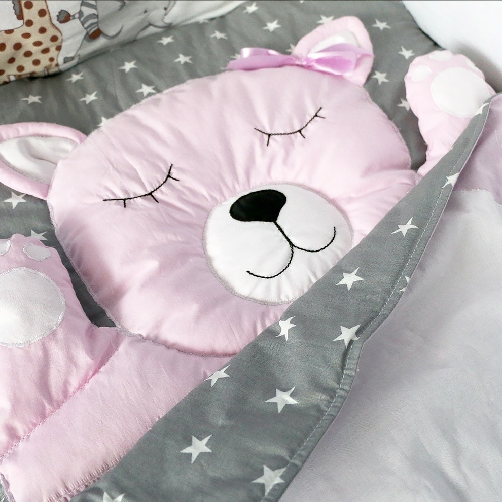 Матрасик стеганый с резинкой, для фиксации к основному матрасу, одеяло на двухзамковой молнии, открывается в обе стороны, подушки - зверюшки сделают сон спокойным и запоминающимся