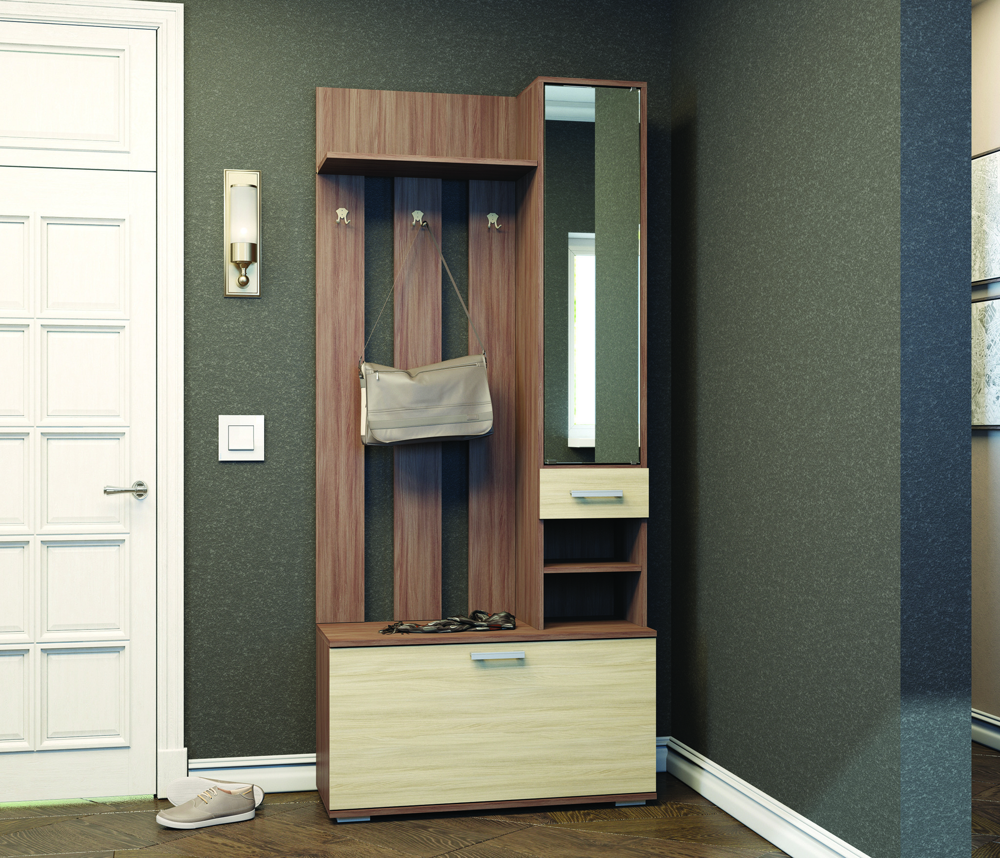 с зеркалом, с обувницей, С полками