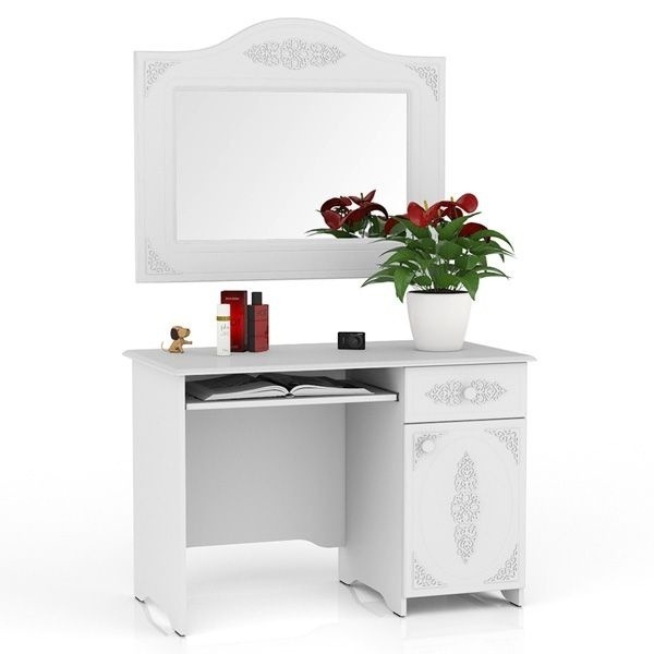 Письменный стол с выдвижным ящиком и тумбой. Размер столешницы 1100 мм * 600 мм. Может использоваться, как стол для компьютера. Снабжен выдвигающейся панелью 300 мм * 600 мм для клавиатуры.