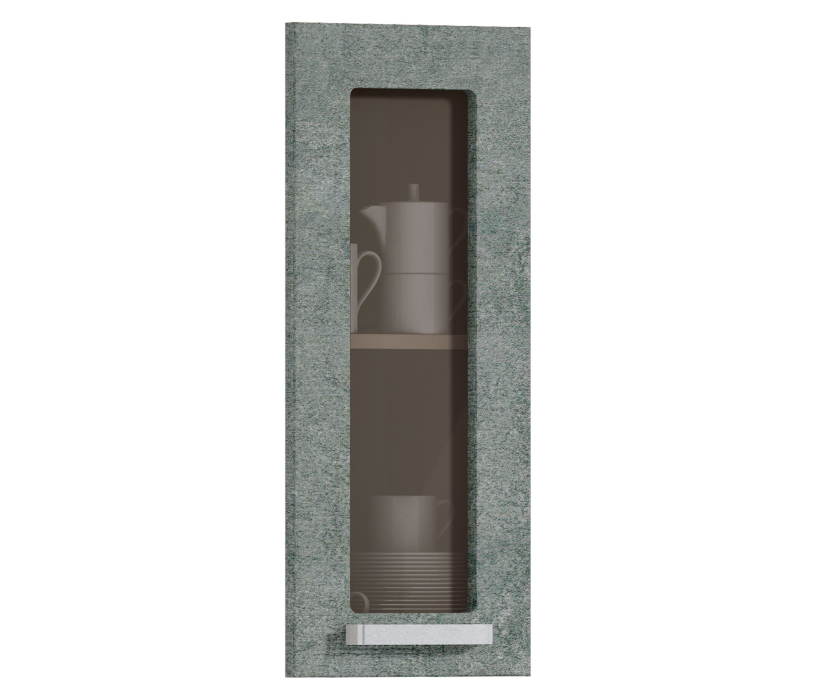 Компактная застекленная дверца для кухонного шкафа. Она открывается справа налево. Она выполнена из качественной прессованной древесины и каленого стекла. Можно выбрать дверцу цвета «дуб Ривер» или «вишня Барселона».
