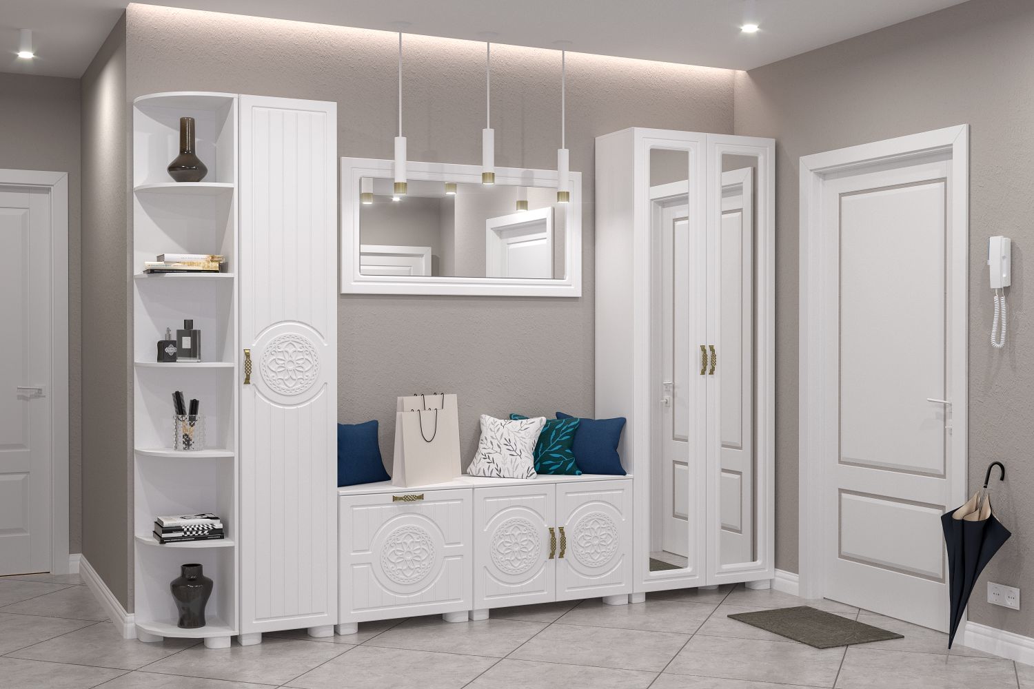 Цвет корпуса/фасада: белый структурный/белое дерево. Шкаф-пенал Монблан МБ-22К станет замечательным дополнением для обустройства комфортной и функциональной комнаты. За распашной дверью находятся полки, созданные для хранения сложенной одежды, белья, различных аксессуаров и коробок с обувью. Дверь шкафа может комплектоваться зеркалом или стеклом. Модуль может быть собран в зеркальном варианте "левым" или "правым". Высота опоры 50 мм.
