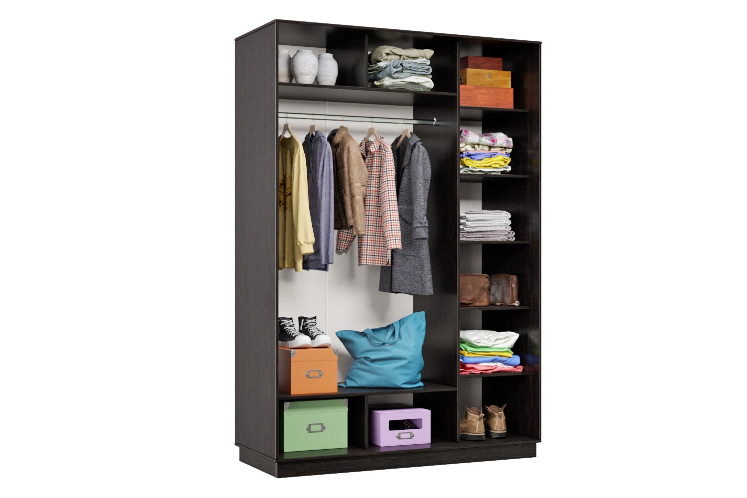 Используется штанга для одежды. Максимальная нагрузка до 22 кг.
