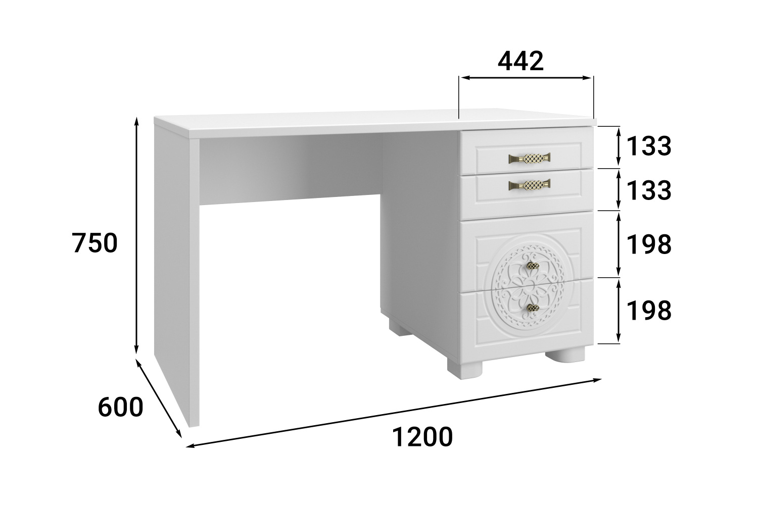 Толщина столешницы: МДФ 25 мм.