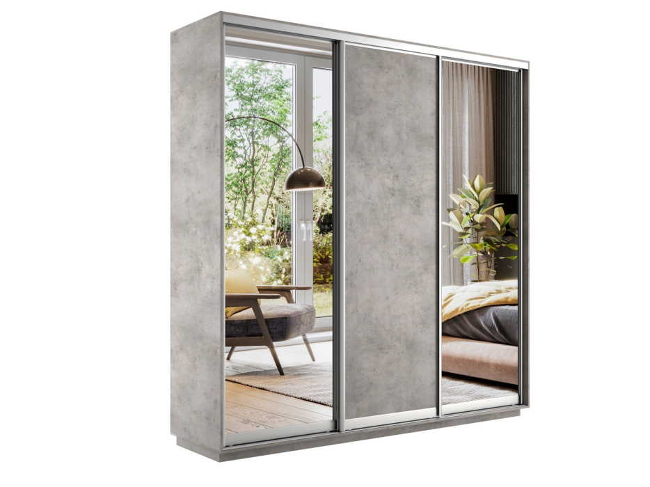 Отзывы о Столплит Шкаф-купе Экспресс Медиум (2 зеркала) трио 2400 x 2400 x 450 Бетон серый