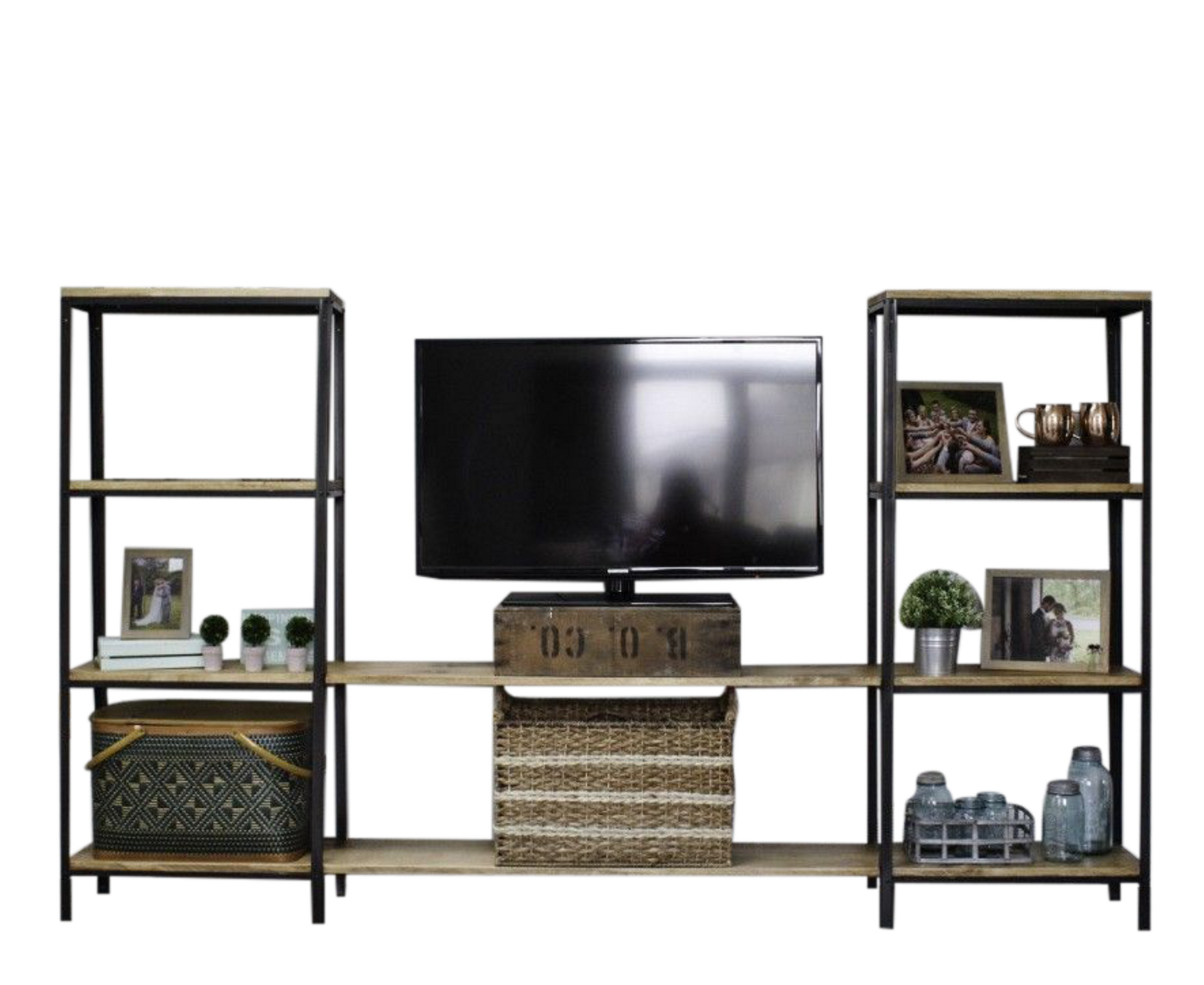 С ТВ тумбой , со стеллажом, глянцевые фасады, С полками