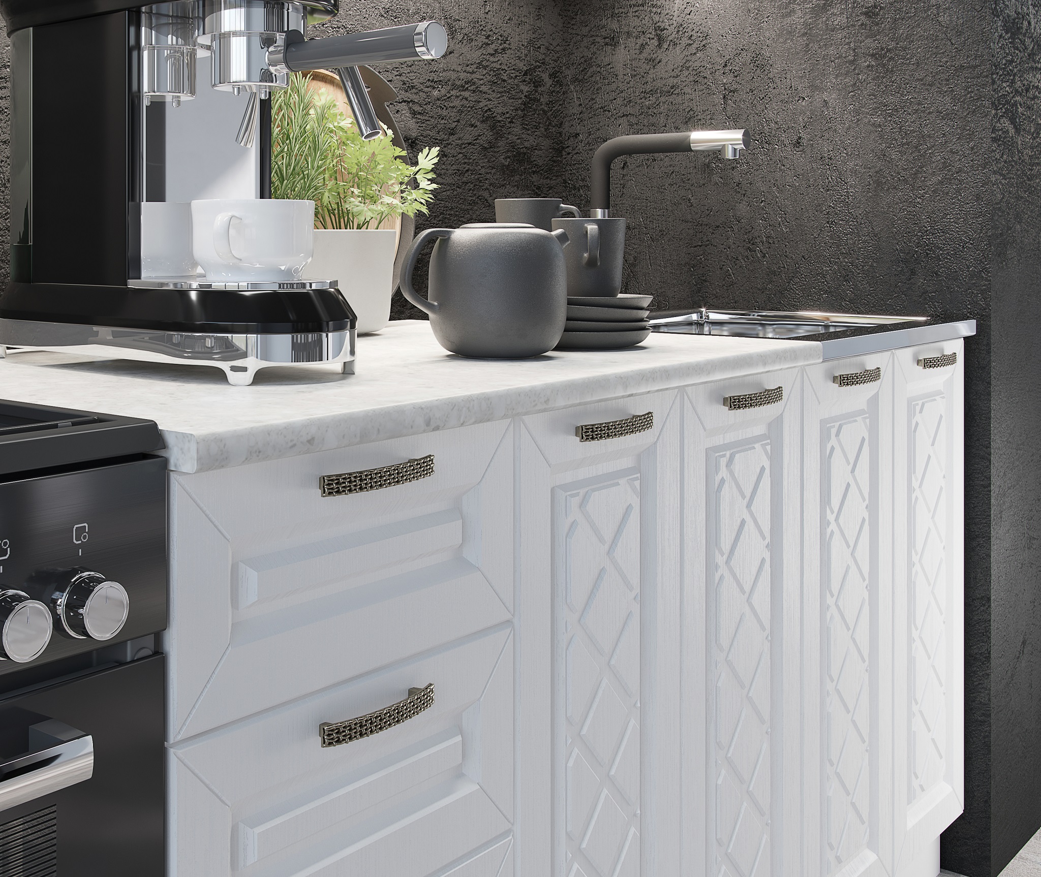 Высота нижних модулей указана с учетом столешницы, кроме модуля М600 под мойку. Мойка в комплект не входит и приобретается отдельно.