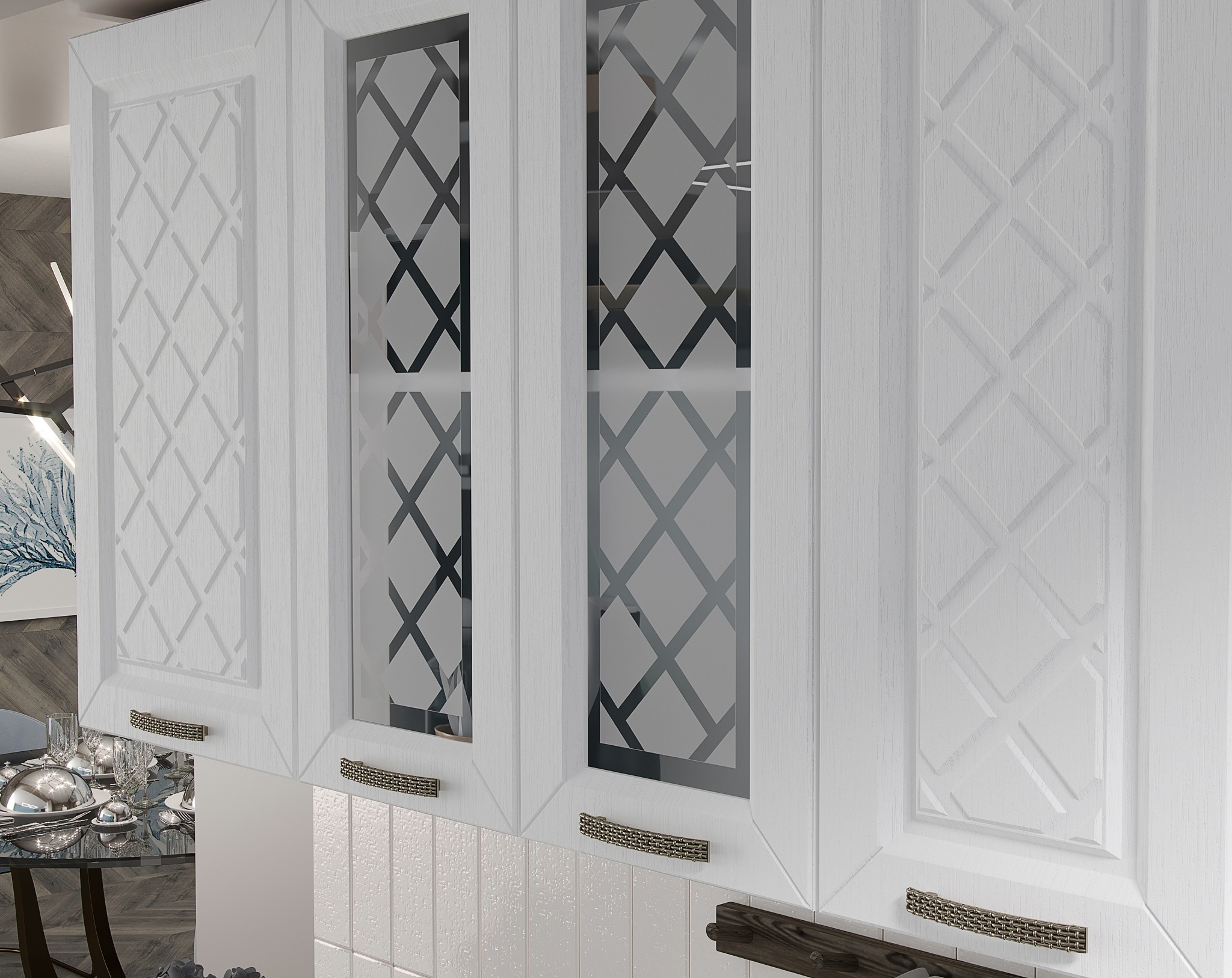 Кухня ""Агава"" акация - изящный гарнитур с фрезеровкой по фасаду и матовыми стёклами.