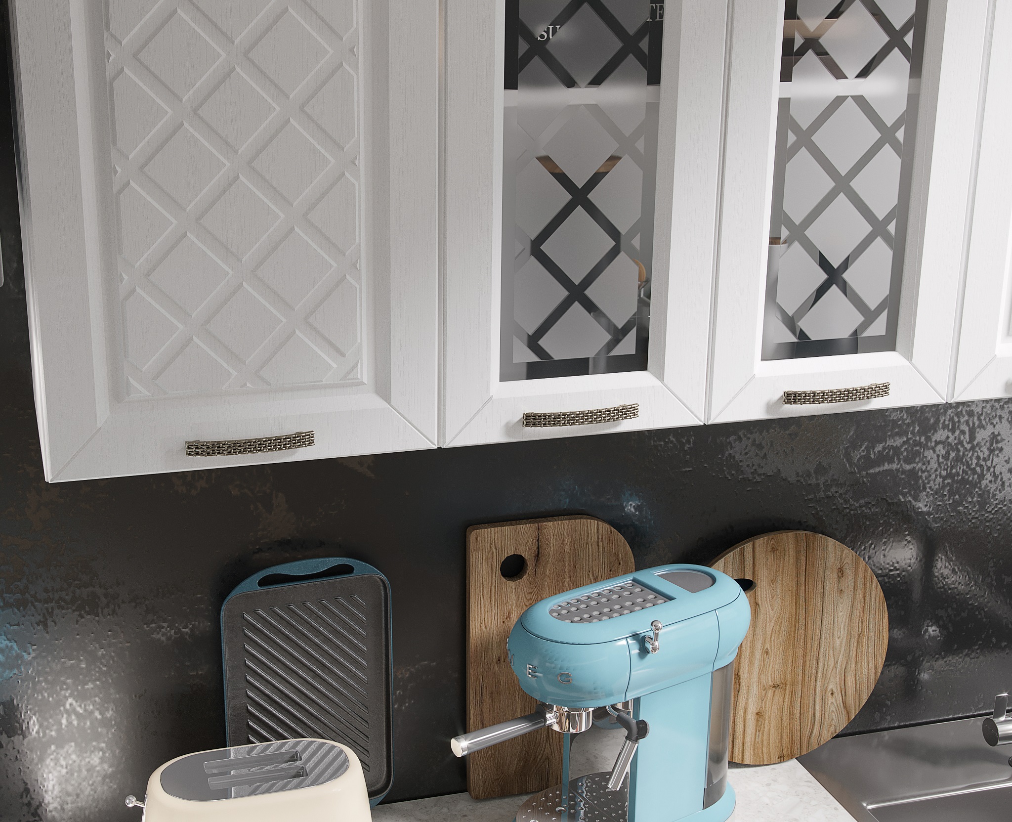 Глубина верхних и нижних шкафов указана с учетом фасада.