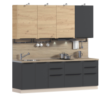 Кухонный гарнитур ЛОФТ Регина Песочный/Диамант серый, Дуб дикий 2,4 м Код 00000285585