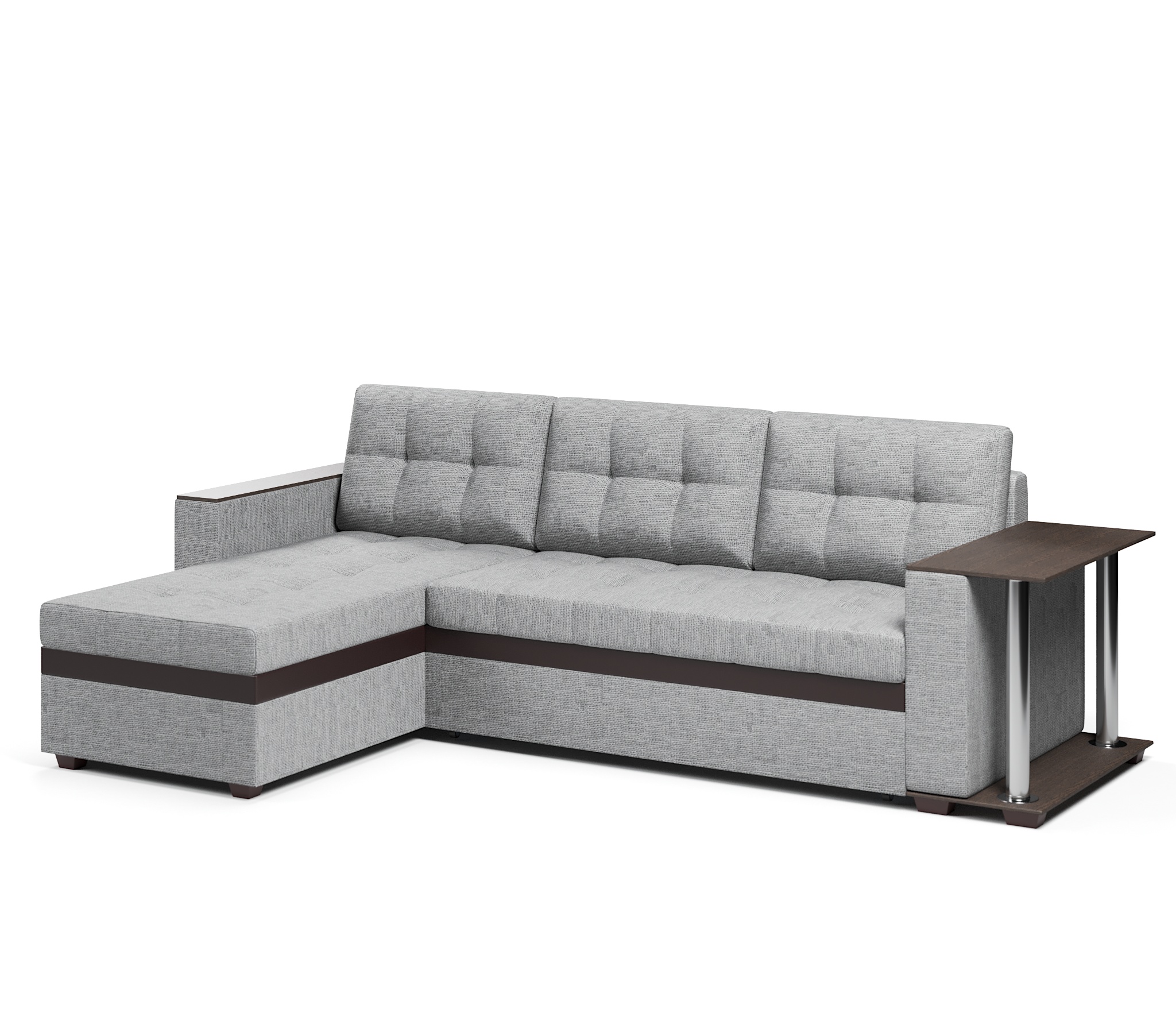 Отзывы о Столплит Диван-кровать угловой Атланта со столом дельфин,рогожка+экокожа Серый