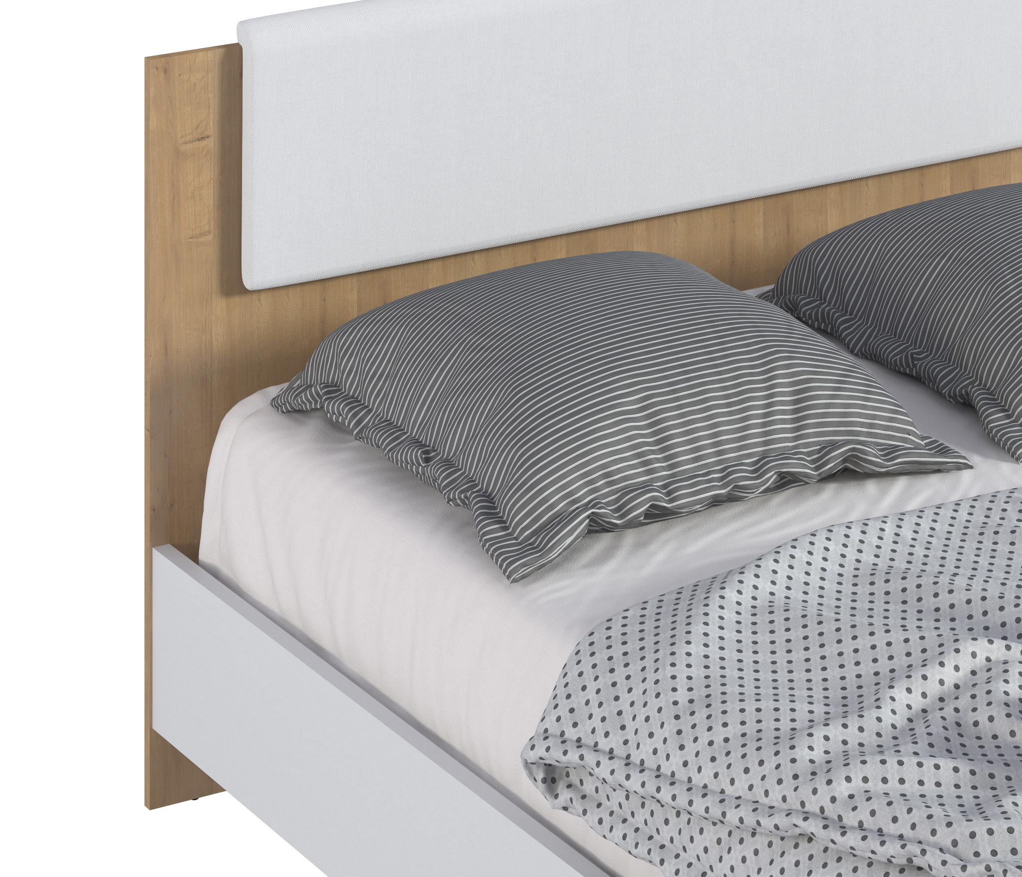 Двуспальная кровать имеет в изголовье мягкую накладку из качественной искусственной кожи.