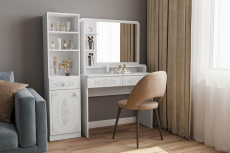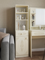 Шкаф АС-65 прекрасно дополнит ваш туалетный столик или письменный стол, создав много места для хранения книг, парфюмерии и разных аксессуаров. Фурнитура: петли с доводчиками, телескопические направляющие полного выдвижения. Модуль может быть собран в зеркальном варианте "левым" или "правым". Мебель изготовлена из качественной ламинированной ДСП 16 мм. В оформлении фасадов МДФ применяется уникальная технология нанесения объемного узора 3D.