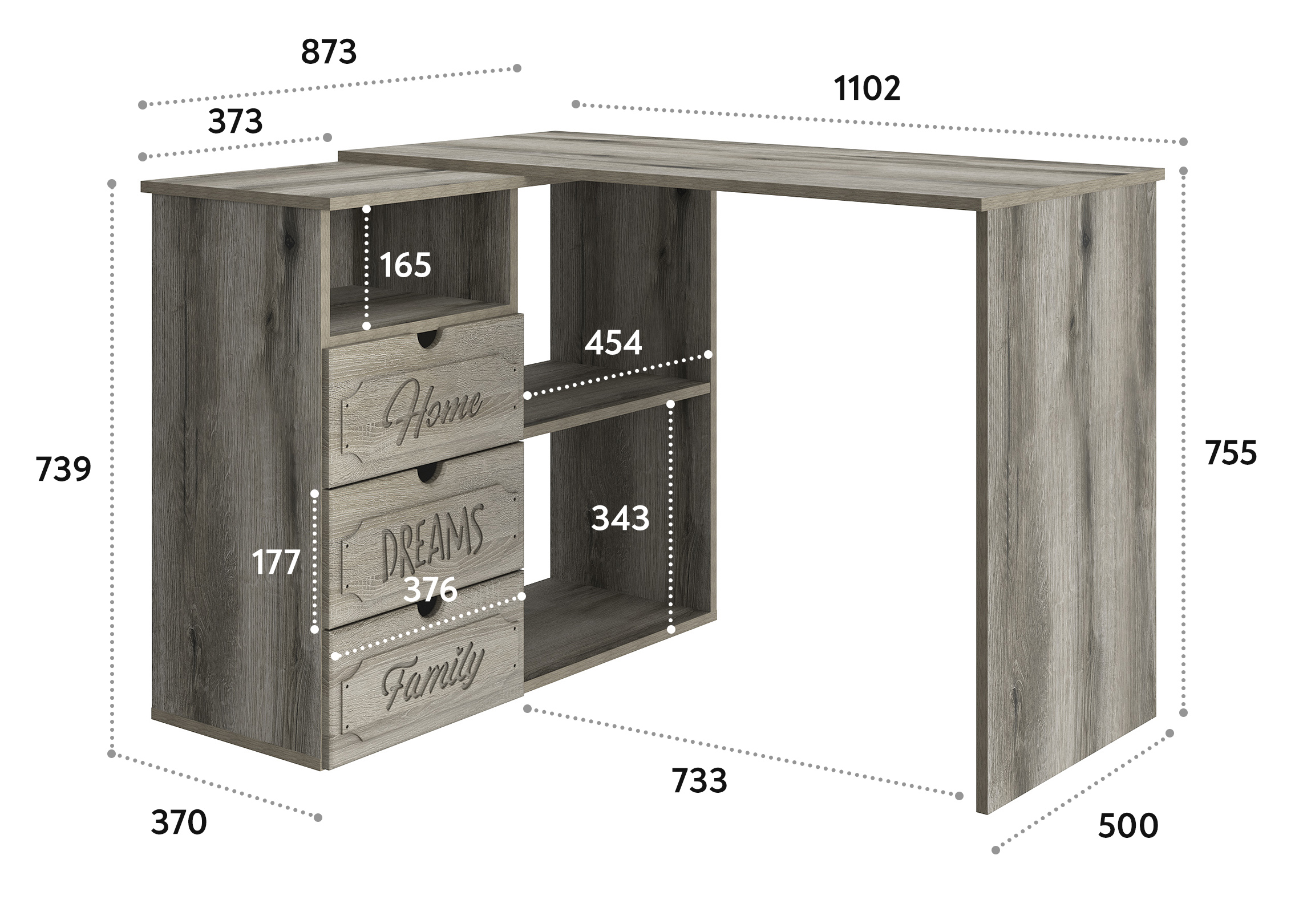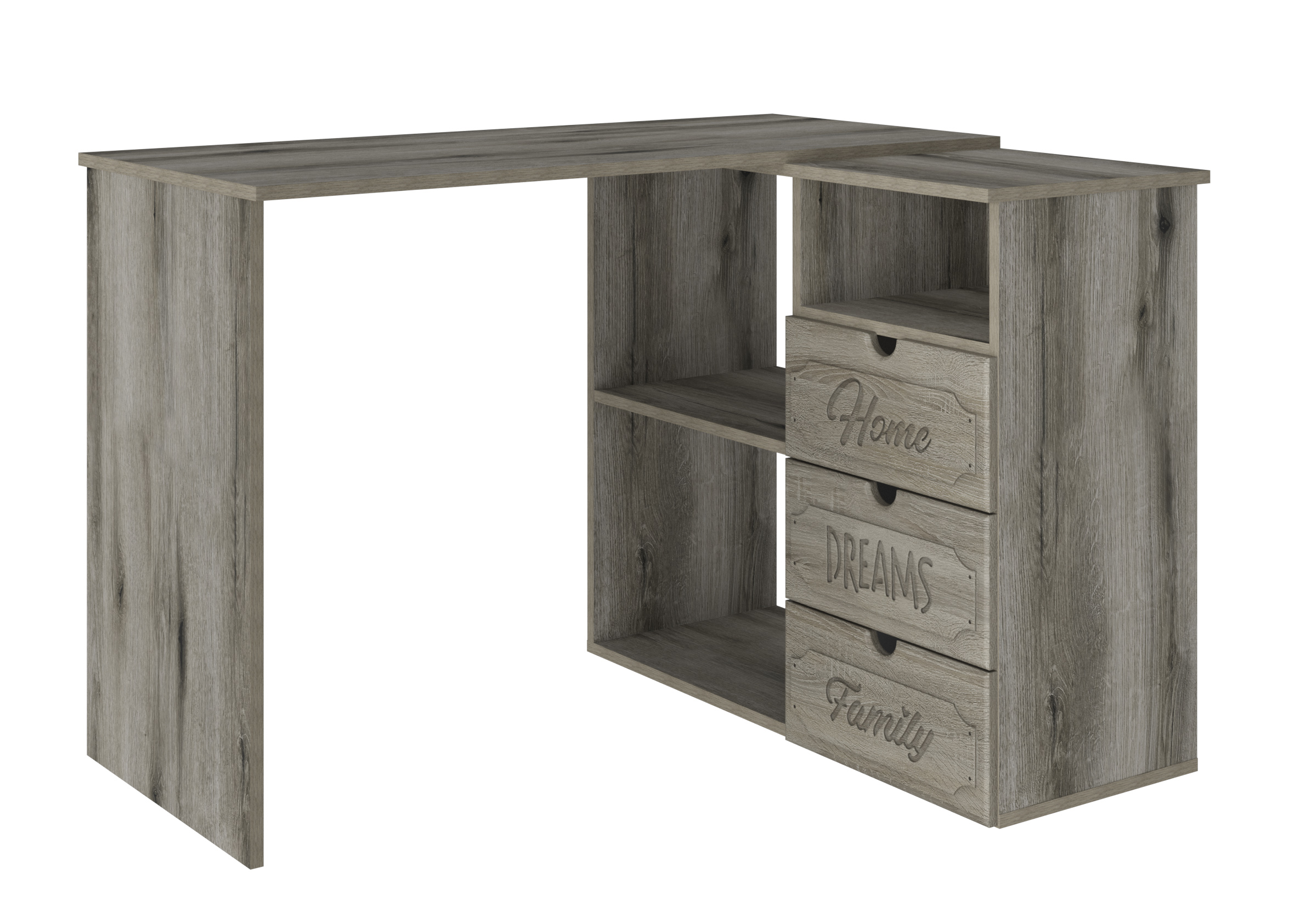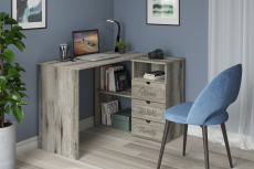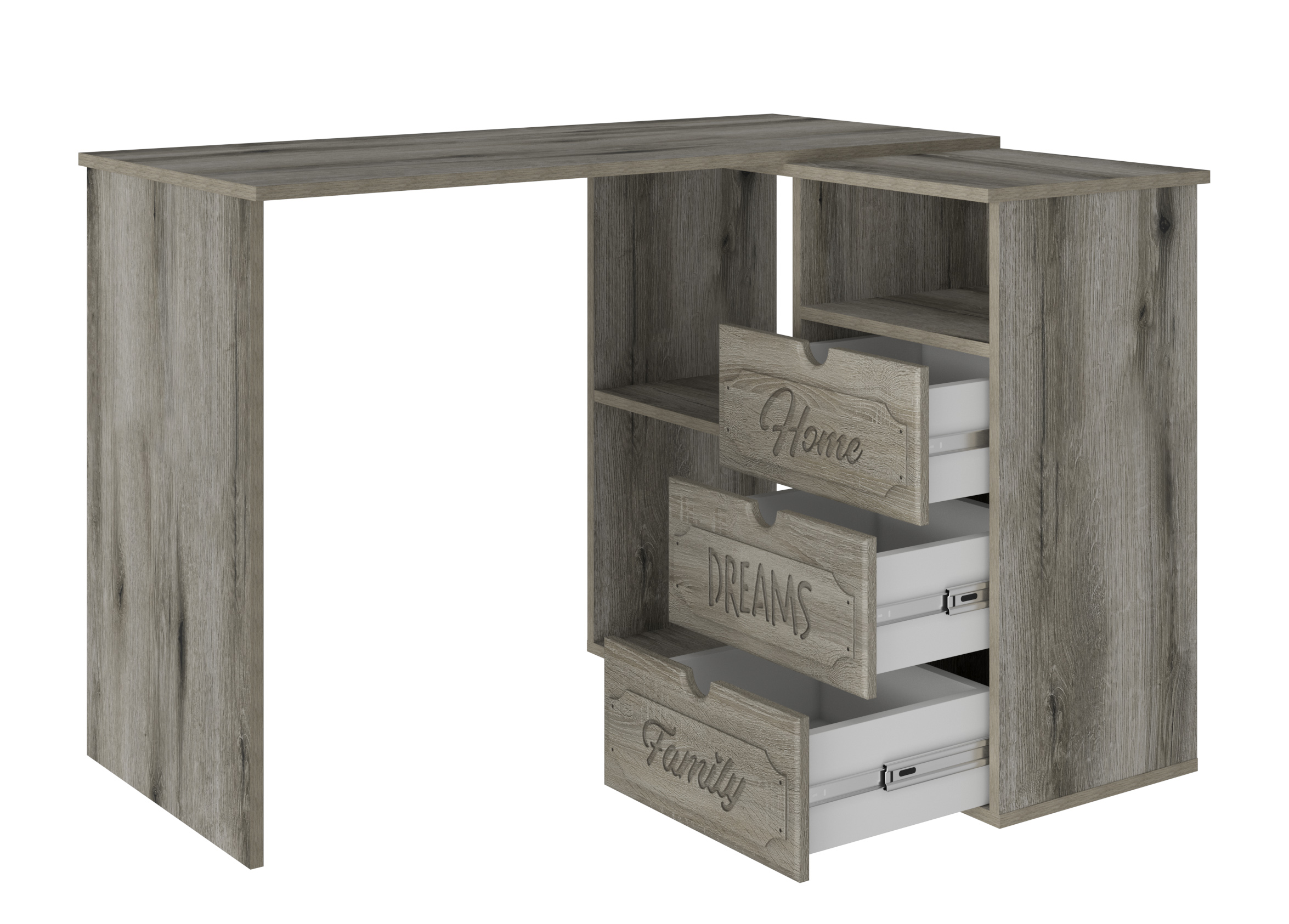 Угловой стол ДримСтар ДС-5 станет отличным местом для работы. Стол оснащен тумбой с тремя выдвижными ящиками, нишей и двум полками, где можно хранить блокнот, канцелярские принадлежности, книги и журналы. Стильный дизайн позволит разместить в любом современной интерьере. Модуль может быть собран в зеркальном варианте "правым" или "левым". Фурнитура: телескопические направляющие полного выдвижения.