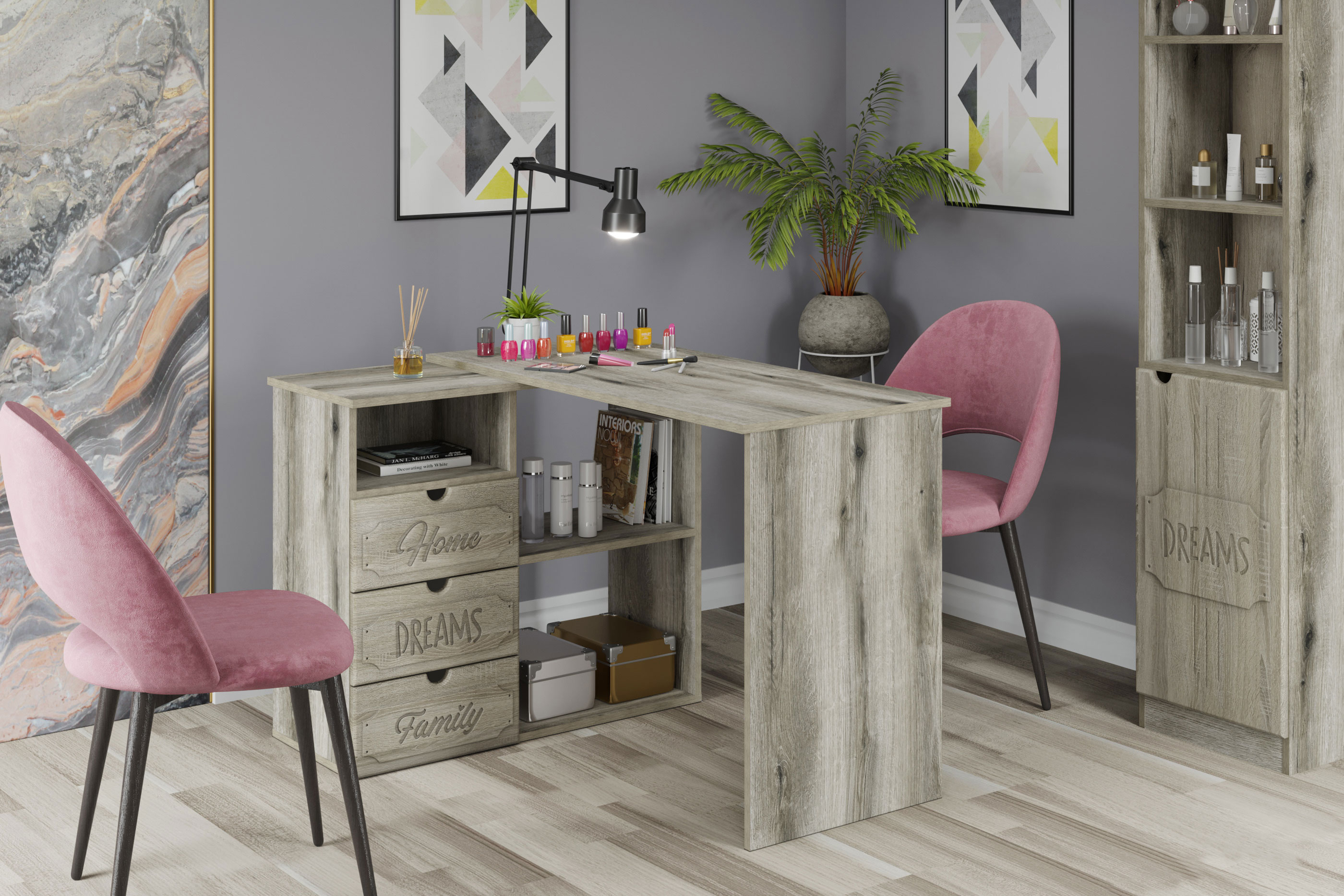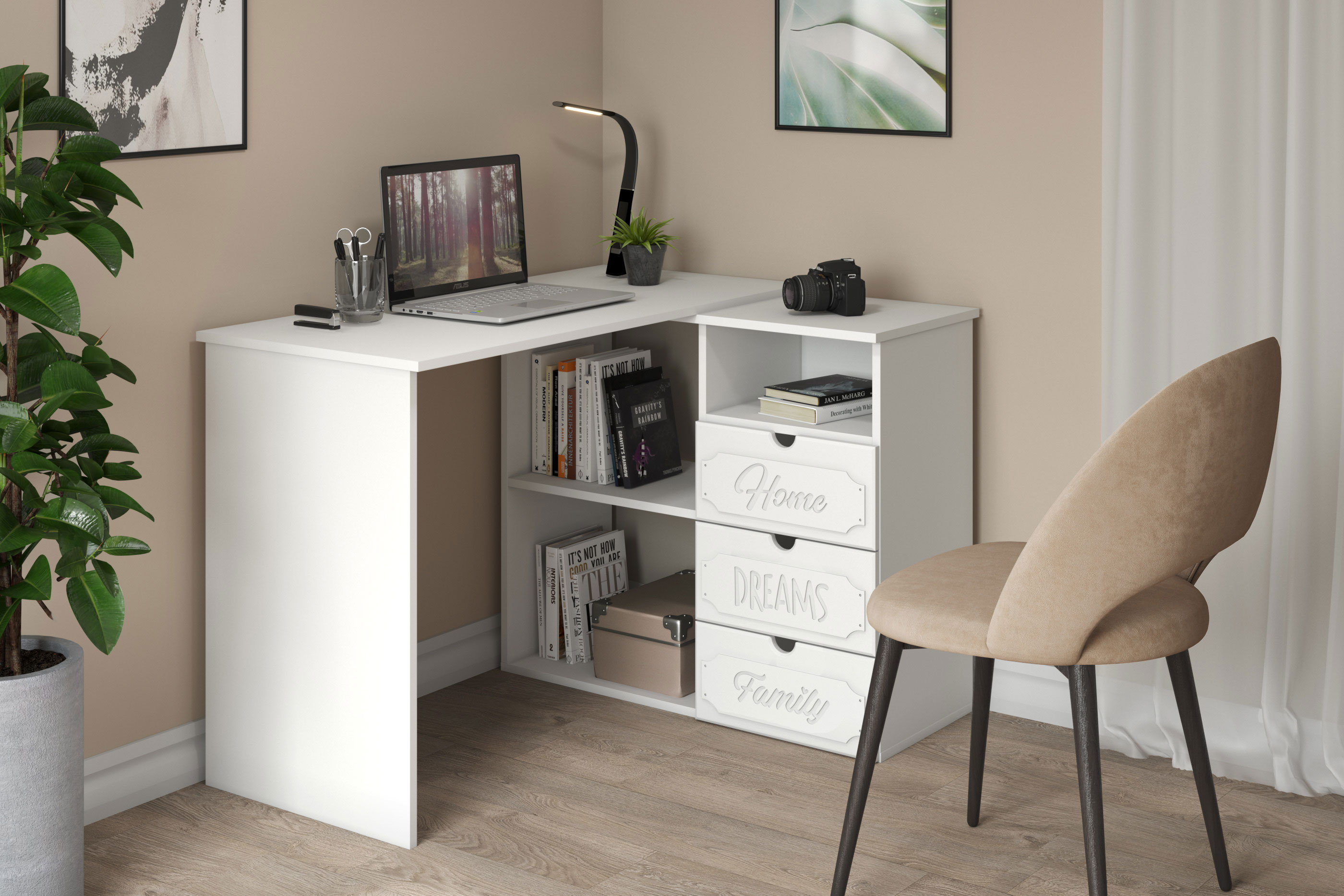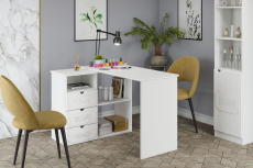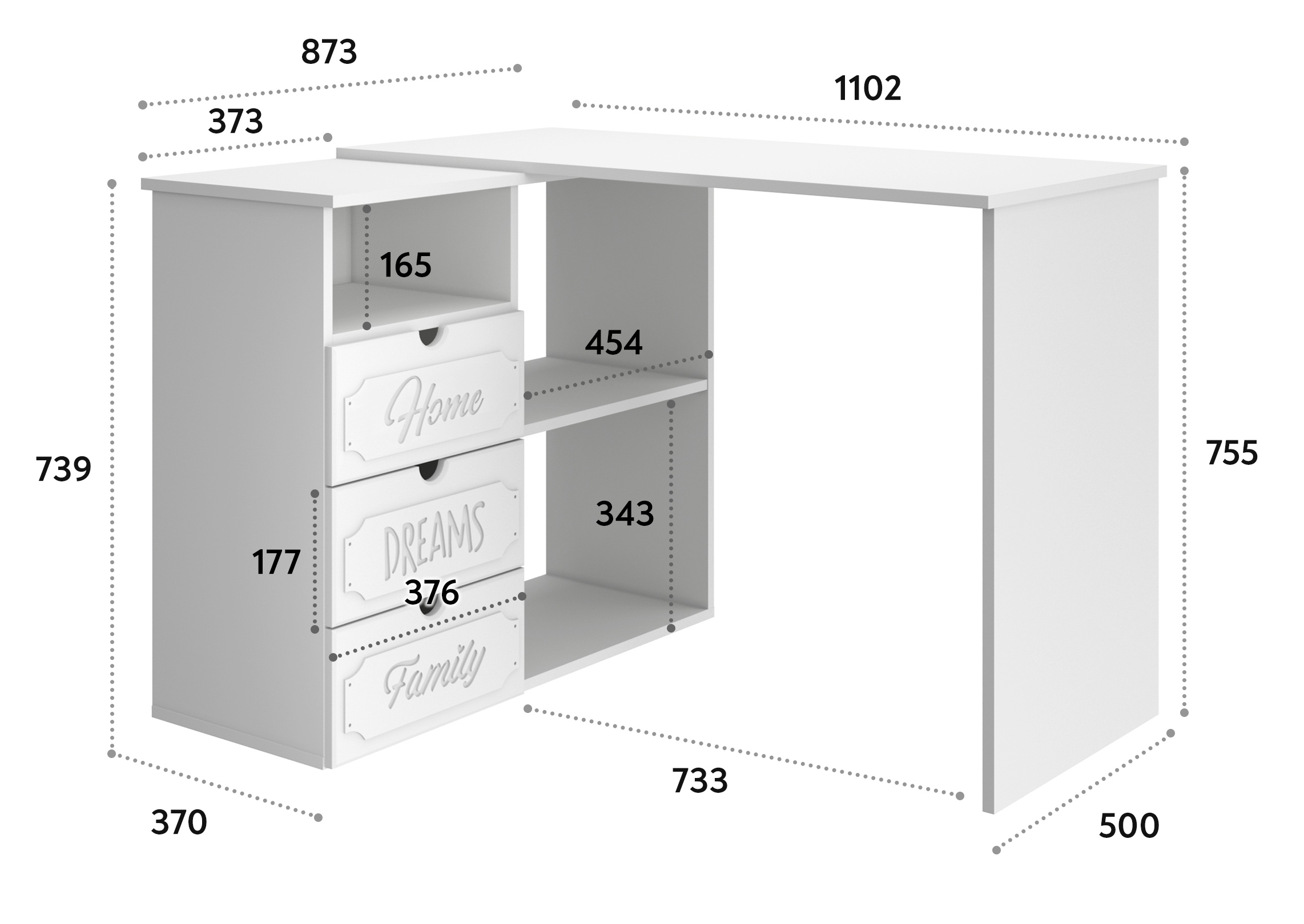 Угловой стол ДримСтар ДС-5 станет отличным местом для работы. Стол оснащен тумбой с тремя выдвижными ящиками, нишей и двум полками, где можно хранить блокнот, канцелярские принадлежности, книги и журналы. Стильный дизайн позволит разместить в любом современной интерьере. Модуль может быть собран в зеркальном варианте "правым" или "левым". Фурнитура: телескопические направляющие полного выдвижения.