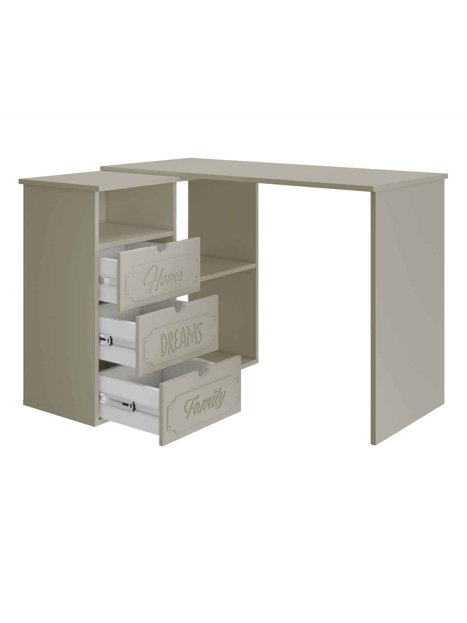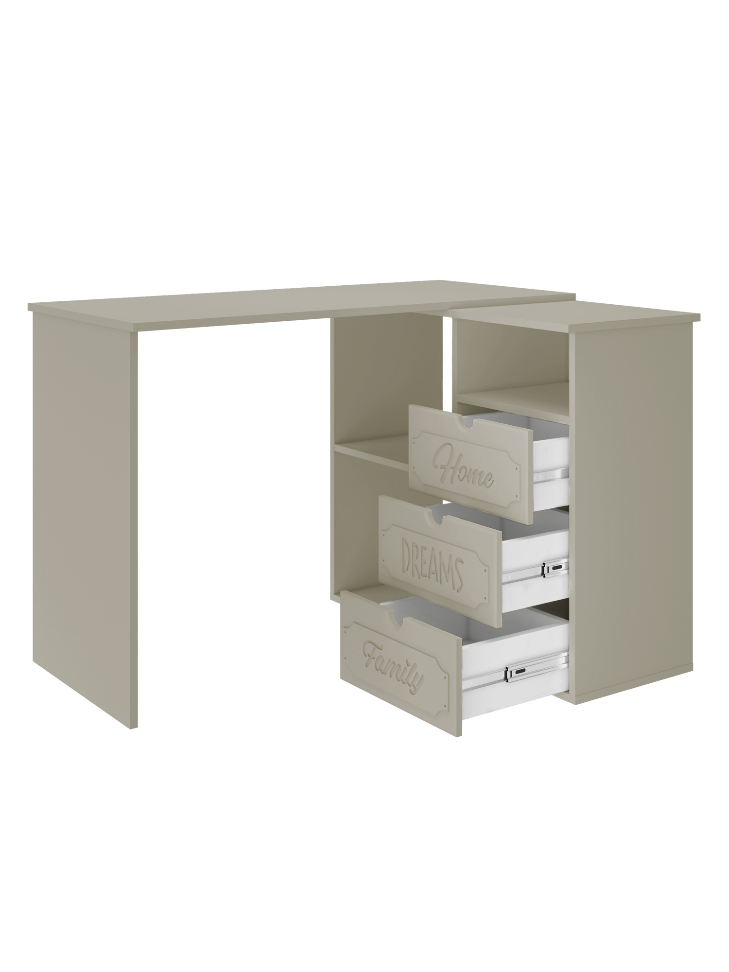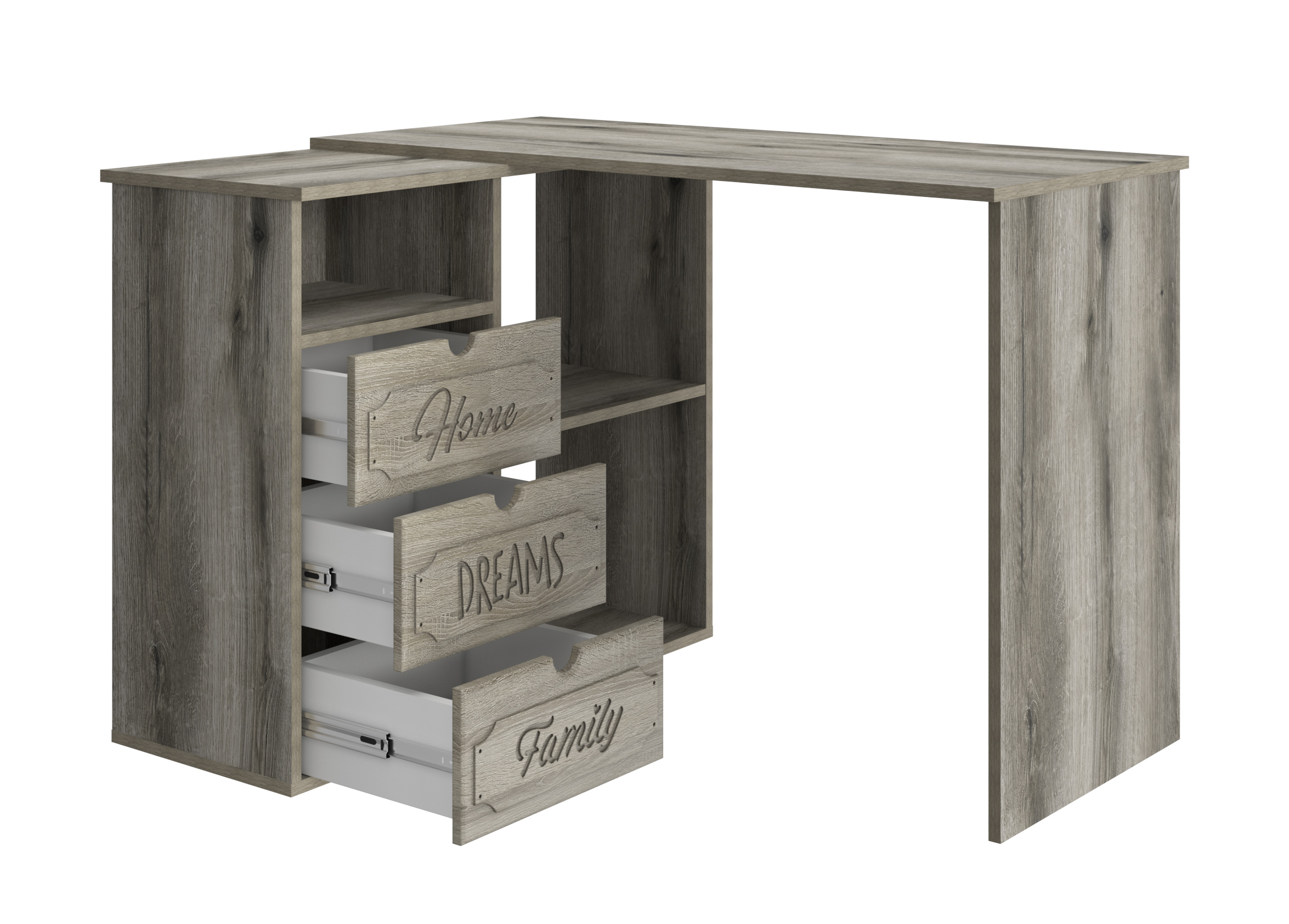 Угловой стол ДримСтар ДС-5 станет отличным местом для работы. Стол оснащен тумбой с тремя выдвижными ящиками, нишей и двум полками, где можно хранить блокнот, канцелярские принадлежности, книги и журналы. Стильный дизайн позволит разместить в любом современной интерьере. Модуль может быть собран в зеркальном варианте "правым" или "левым". Фурнитура: телескопические направляющие полного выдвижения.