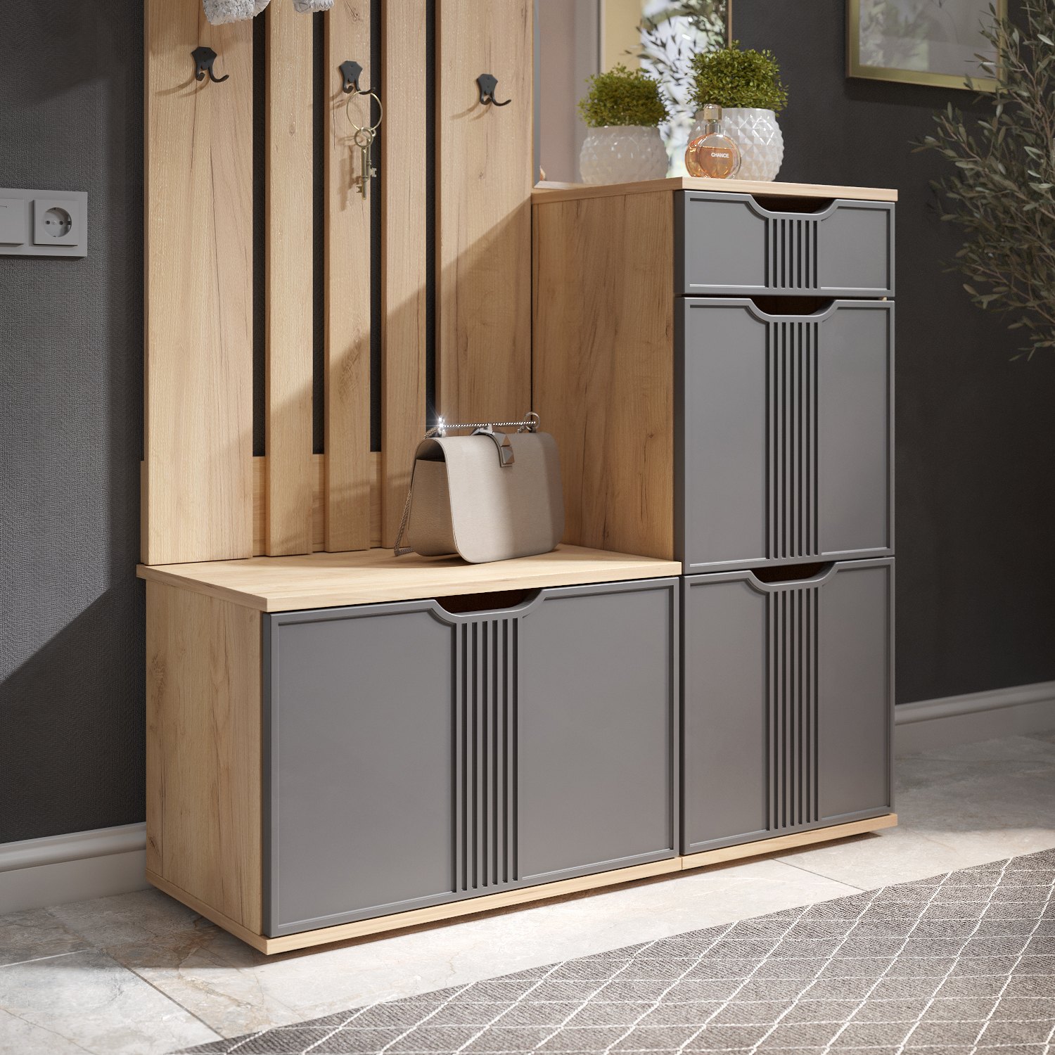 Искали компактную прихожую, выбор пал на данную модель , купили все в комплекте. Качество хорошее, не дополнительных стыков ламинации, в которые может попадать влага и разбухать. Минус только в том что все крепить по раздельности, но это придирка больше. Рекомендую!