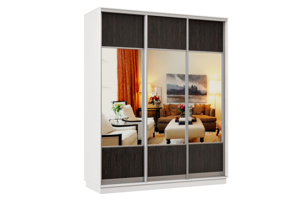 Шкаф-купе Премьер Лайт 23 (05;05;05) трехдверный (Белый/Венге Цаво)