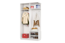 В комплекте 3 крючка для одежды. Используется штанга для одежды. Максимальная нагрузка до 12 кг. Задняя стенка - ДВП белая облагороженная.