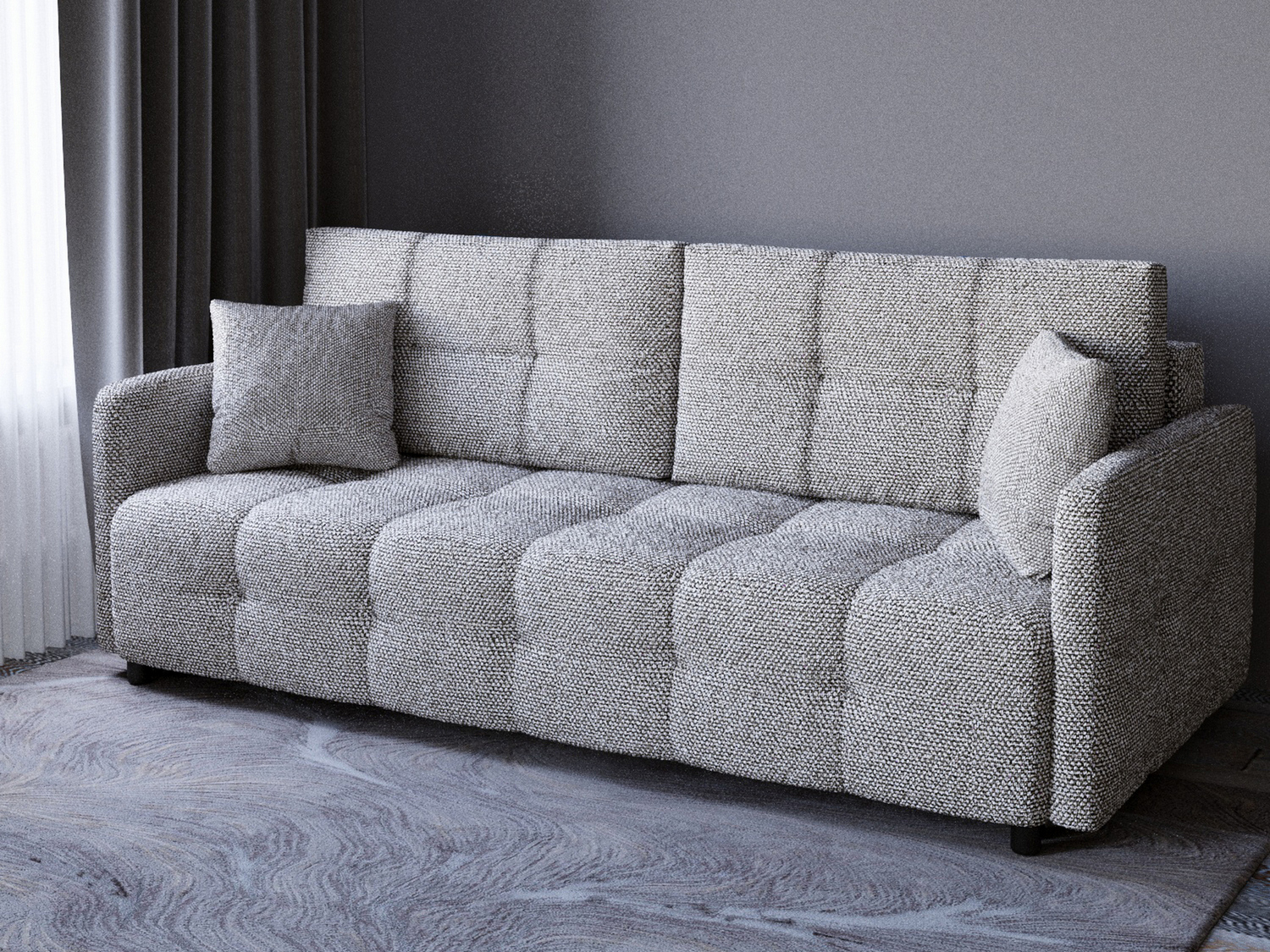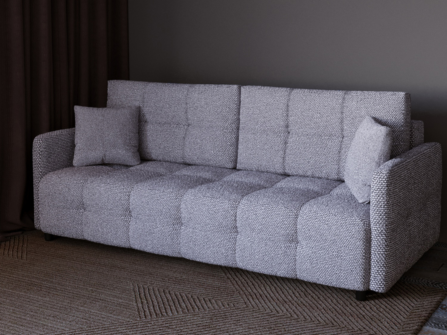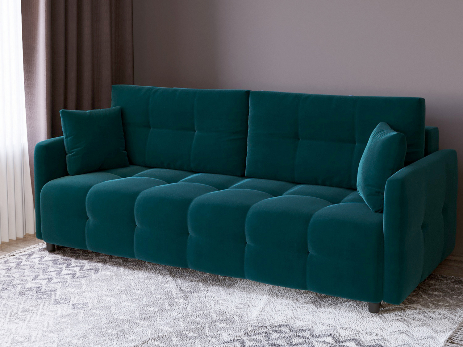 Диван «Квадро» – это современный диван в универсальном дизайне. Многочисленные утяжки на ткани делят обивку на квадраты и создают впечатление невероятной мягкости за счет пухлых, округлых форм. Это касается и сиденья, и подушек спинки, и даже подлокотников. Сочетание независимого пружинного блока и ППУ в наполнителе гарантирует оптимальную поддержку тела во время отдыха. Прочный деревянный каркас обеспечивает длительный срок службы дивана. Диван «Квадро» способен гармонично вписаться почти в любой стиль интерьера. Особенности дивана «Квадро»:• тик-так: даже при регулярном использовании механизм почти не изнашивается, отличается высокой надёжностью и прочностью;«Квадро»:• узкие подлокотники: позволяют поставить диван в небольшой комнате и значительно сэкономить свободное пространство;«Квадро»:• декоративные подушки: увеличивают удобство отдыха и производят особое, уютное ощущение от мебели;«Квадро»:• блок независимых пружин: создает нужную анатомическую поддержку, обеспечивая наиболее верное положение тела во время сна и отдыха для всех, без эффекта гамака;«Квадро»:• удобное сиденье : отлично для отдыха за просмотром любимого сериала или чтения литературы;«Квадро»:• вместительный ящик для белья: применим для размещения нескольких комплектов спального белья, одеял и подушек, а также других вещей, например, зимней одежды или детских игрушек.«Квадро»:Ширина-222 см; Высота-93 см; Глубина- 111 см.Спальное место-150 х 200см; Ширина спального места-150; Длина спального места-200; Высота сиденья от пола- 45см; Глубина сиденья- 58см; Тип обивки- велюр; Материал каркаса- дерево; Раскладной-раскладной; Механизм трансформации-Тик так ; Максимальная нагрузка-320; Наполнитель-НПБ, Тип спального места- двуспальные; Ящик для белья- есть; Количество мест- трехместные; Наличие подушек (декоративных)- без подушек; Форма- прямые; Серия-«Квадро»; Гарантия-18 месяцев