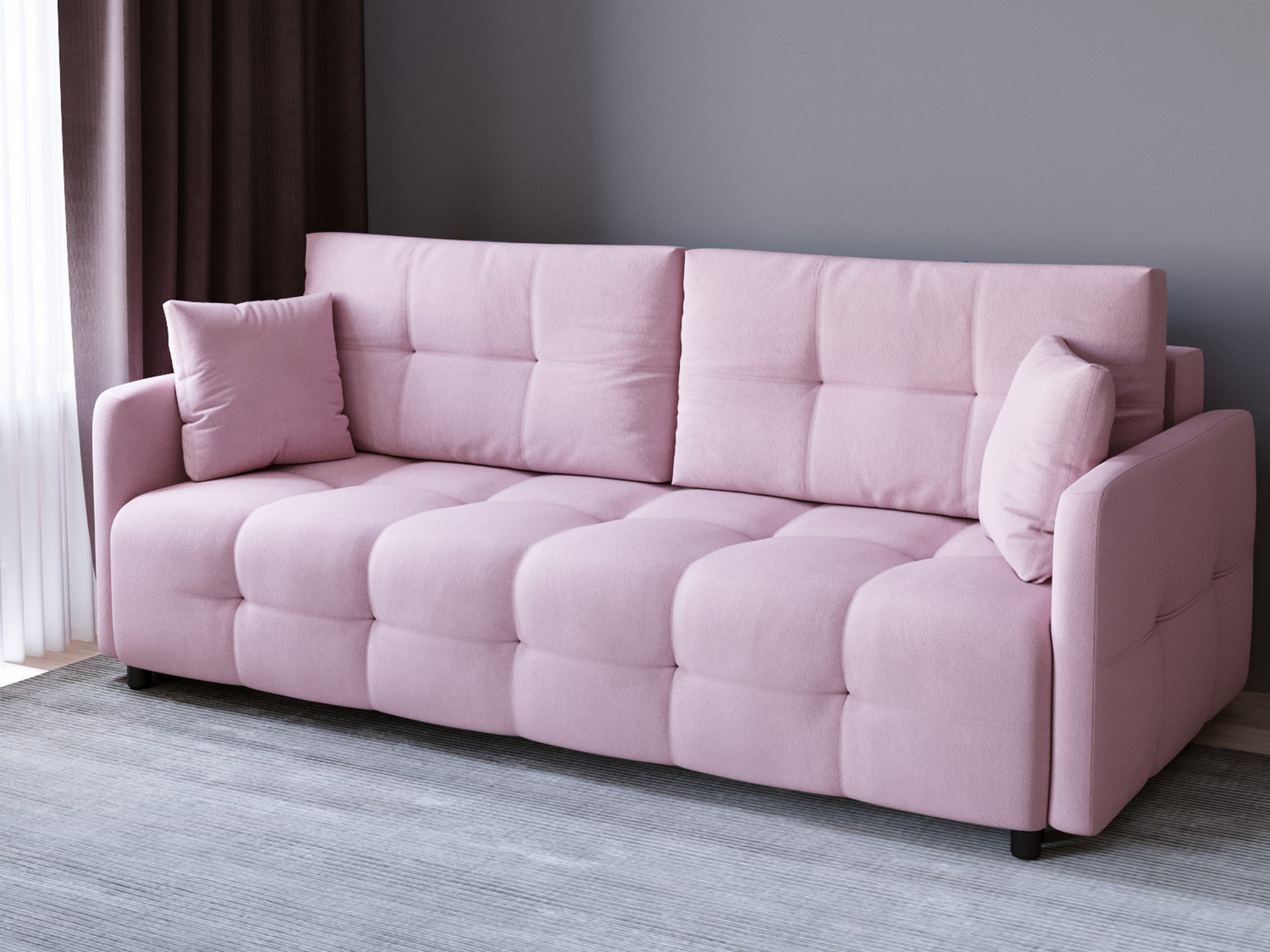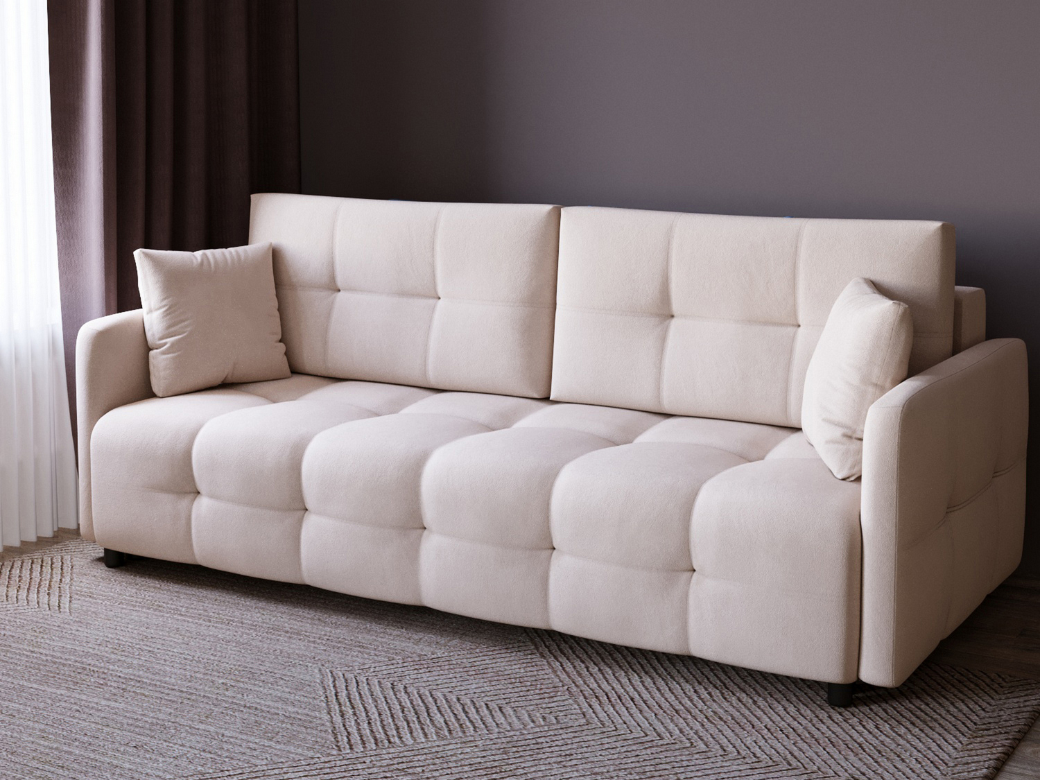 Диван сразу привлекает внимание, смотрится отлично. Прострочка квадратами, приятный цвет, красивый дизайн. Без раздумий выбрала именно Квадро, оплатила на месте. Привезли аккуратно упакованным, ни пятнышка. Спасибо, от покупки все в восторге.
