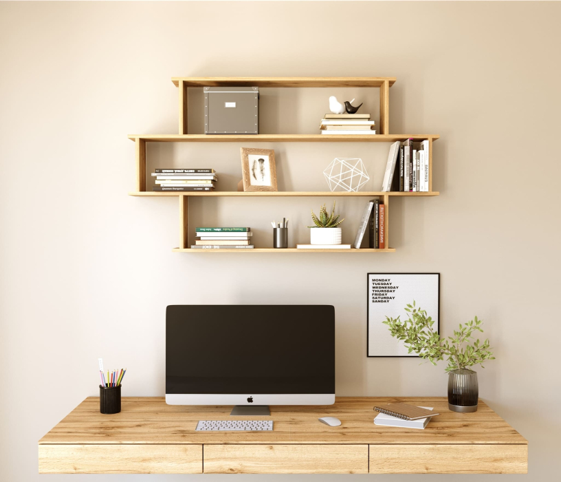 Полка настенная П-13 изготовлена из ламинированной ДСП 16 мм..Высотой 814 мм,шир 1250 мм и глуб 150 мм имеет 3 отсека различной формы для хранения разных вещей. Проста в дизайне и многофункциональна в использовании.