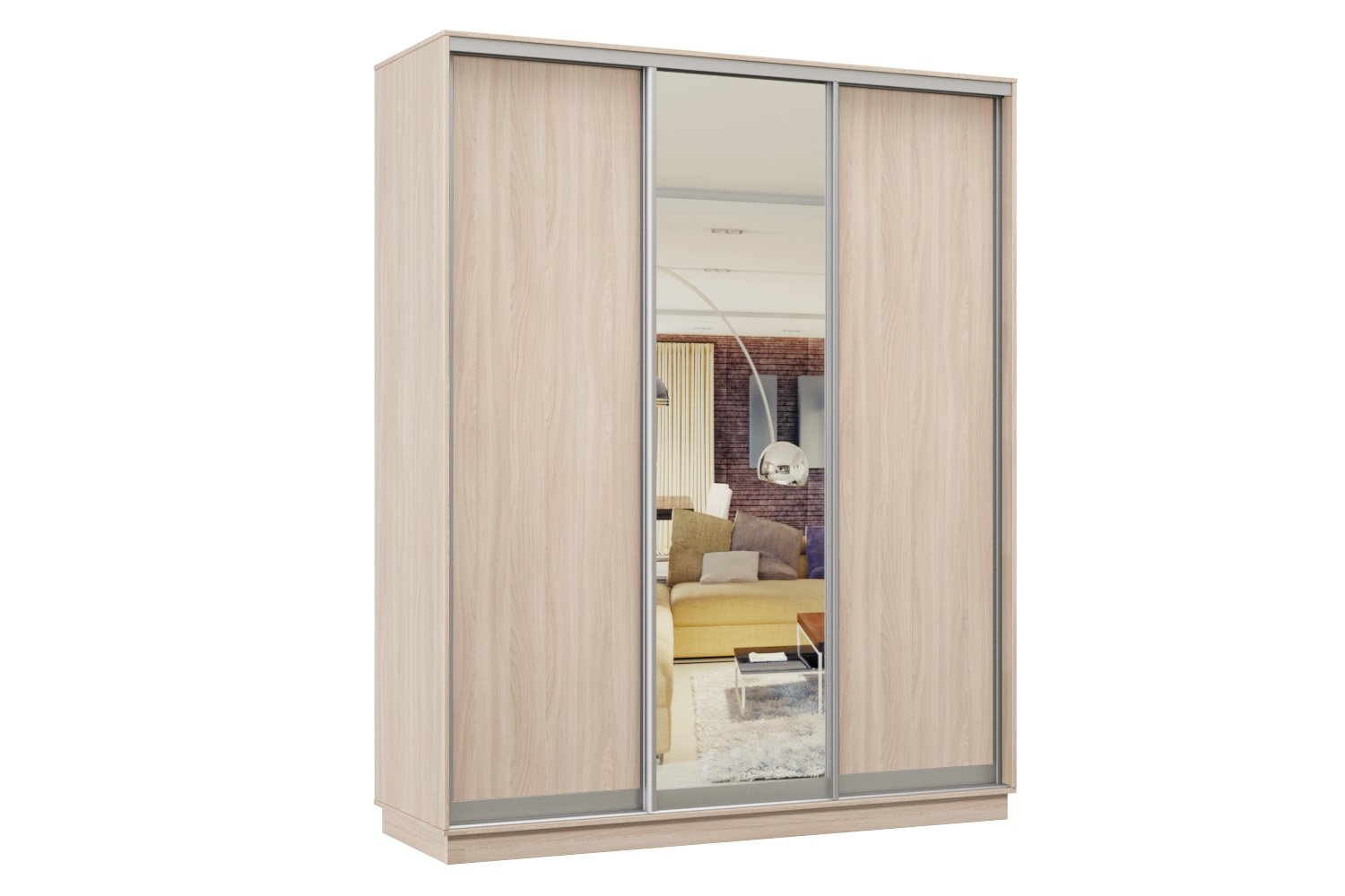Шкаф-купе Премьер Лайт 27 (02;01;02) трехдверный (Ясень шимо светлый)