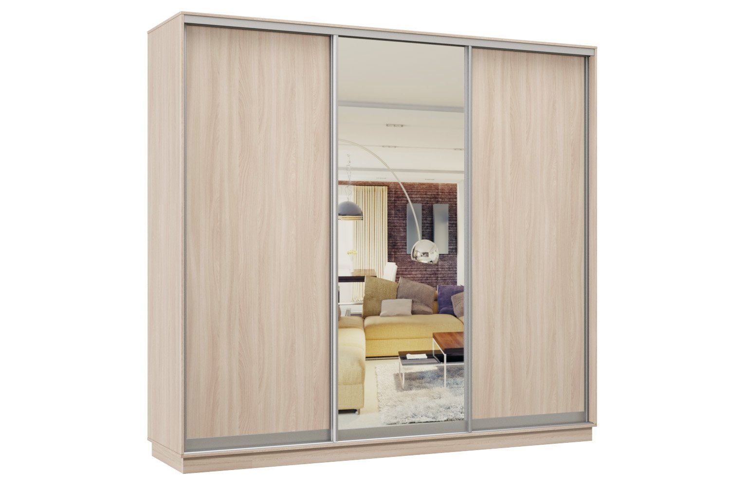 Шкаф-купе Премьер Лайт 54 (02;01;02) трехдверный (Ясень шимо светлый)